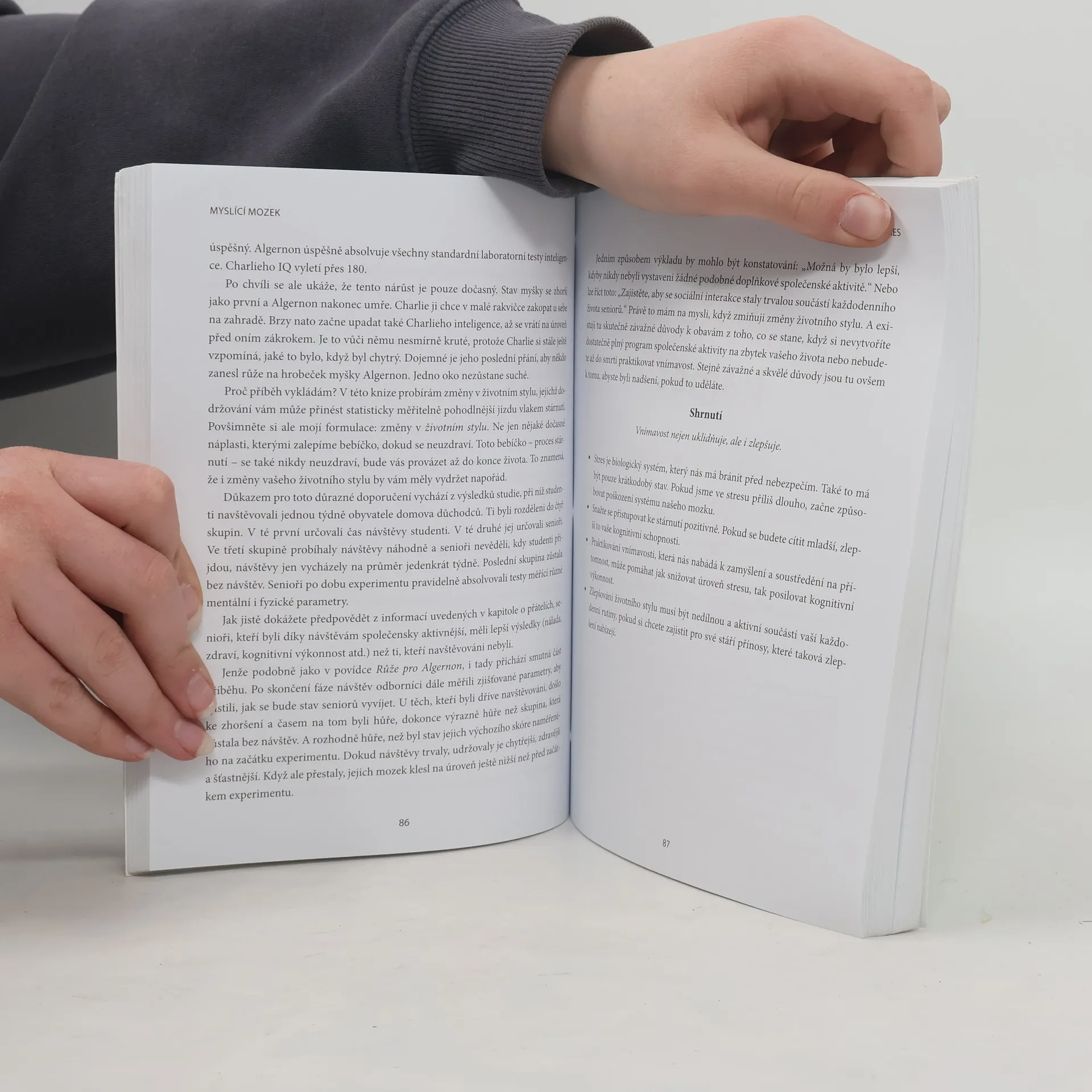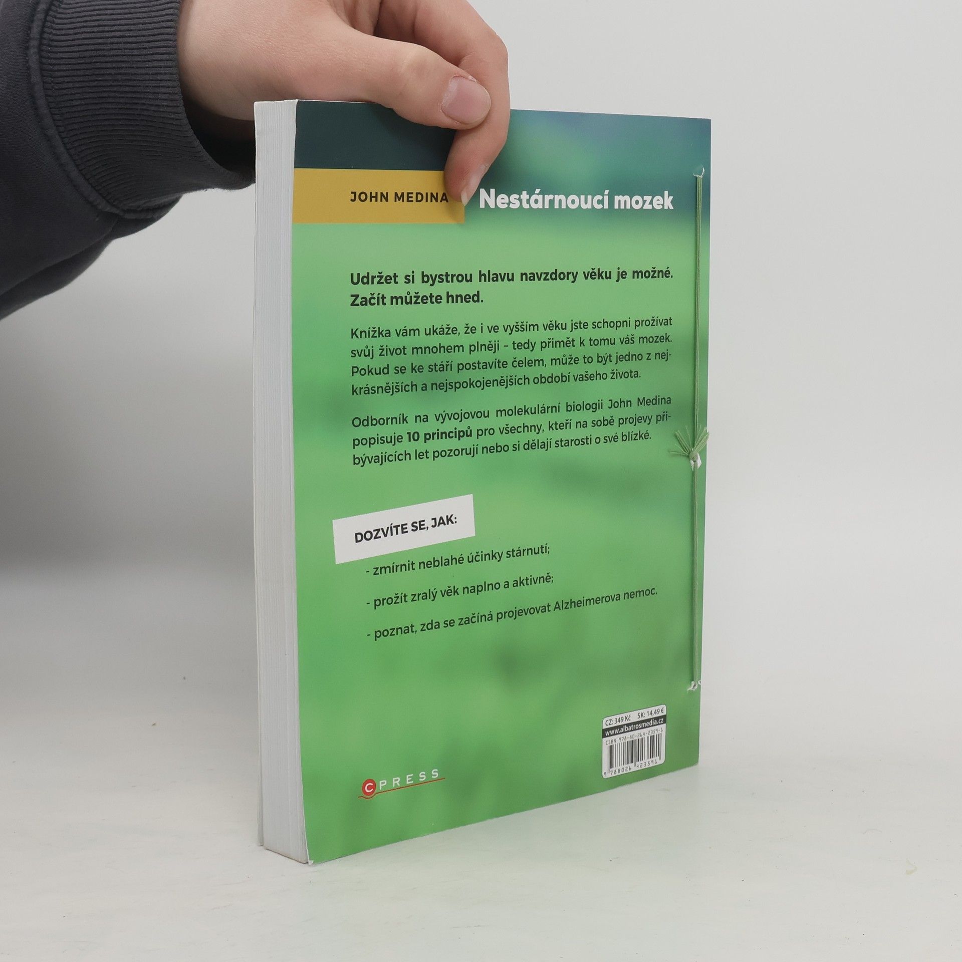 Jak si uchovat bystrou mysl navzdory věku. Udržet si bystrou hlavu navzdory věku je možné. Knížka vám ukáže, že i ve vyšším věku jste schopni prožívat svůj život mnohem plněji – tedy přimět k tomu váš mozek. Jaký vliv má na dlouhověkost přátelství, stres, cvičení, spánek či odchod do důchodu? Odborník na vývojovou molekulární biologii John Medina čtivě a s humorem popisuje 10 principů pro všechny, kteří na sobě projevy přibývajících let pozorují nebo si dělají starosti o své blízké. Dozvíte se, jak zmírnit neblahé účinky stárnutí nebo jak poznat, zda se začíná projevovat Alzheimerova nemoc. A taky že nikdy není příliš pozdě obejmout někoho blízkého, sepsat si, za co jste vděční, začít se učit cizí jazyk, nový tanec či cokoliv, co vás zajímá. Stárnutí si vždy vybírá daň na těle, ale ne vždy na mysli. Pokud se ke stáří postavíte čelem, může to být jedno z nejkrásnějších a nejspokojenějších období vašeho života. Začít můžete hned.