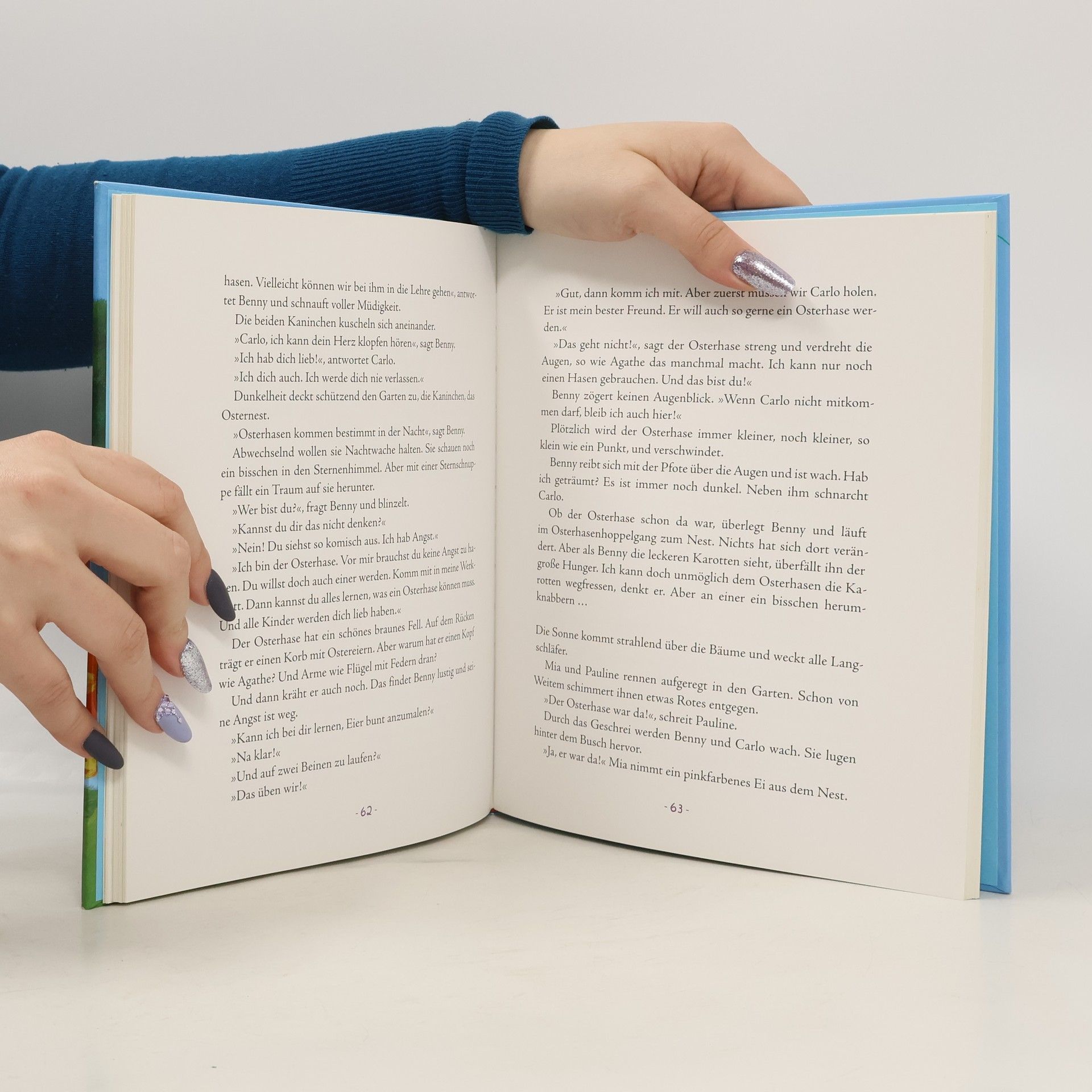 Die schönsten Geschichten rund ums Osterfest Wenn der Osterhasen-Detektiv einen gemeinen Eierdieb entlarvt, der kleine Lennart zu Ostern einen Nikolausstiefel haben will und wenn Seerosenblattohrhasen zu fleißigen Helfern von Meister Lampe werden – dann ist es endlich wieder so weit: Ostern ist da! Und mit dieser Anthologie wird das Fest so überraschend, bunt und lustig wie nie zuvor. Bekannte und beliebte Autoren erzählen ihre zauberhaftesten Geschichten rund um Ostergeheimnisse, perfekte Verstecke und natürlich um Hase, Ei & Co. Eine wunderschön illustrierte, einmalige Sammlung, die in keinem Osternest fehlen darf!