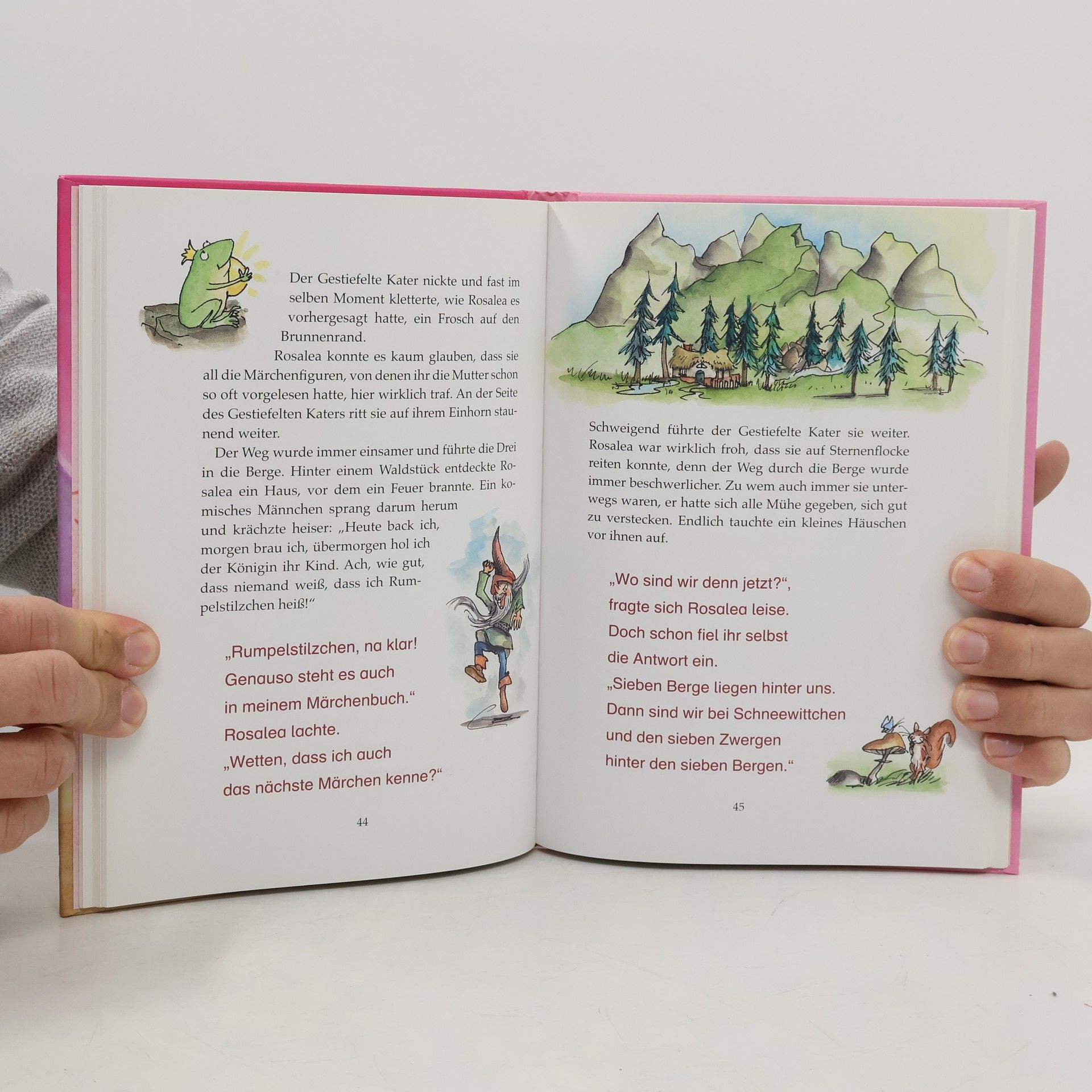 Kaum hält Rosalea ihre neue Prinzessinnen-Spieluhr in den Händen, passiert etwas ganz und gar Unglaubliches: Ein geheimnisvoller Wirbelwind entführt sie und ihr geliebtes Einhorn Sternenflocke in ein wunderbares Zauberland. Dort ist auch schon bald ihr größter Traum zum Greifen nah: endlich eine richtige Prinzessin sein! Doch zuvor muss Rosalea die Bewohner der magischen Welt vom Fluch einer finsteren Zauberin befreien. Und das ist eine schwierige Aufgabe. Aber zum Glück hat Rosalea für solche Fälle noch ein Geheimrezept als Trumpf im Ärmel. Wie in einem Rollenspiel wird diese abgeschlossene Geschichte in mehreren Kapiteln gelesen. Während Erwachsene den Part des Erzählers und anderer Figuren vorlesen, übernimmt der Leseanfänger die Rolle des Protagonisten und liest dessen Part vor. Durch das gemeinsame Lesen und Betrachten der liebenswerten Illustrationen wird so der Spaß am Lesen geweckt.
