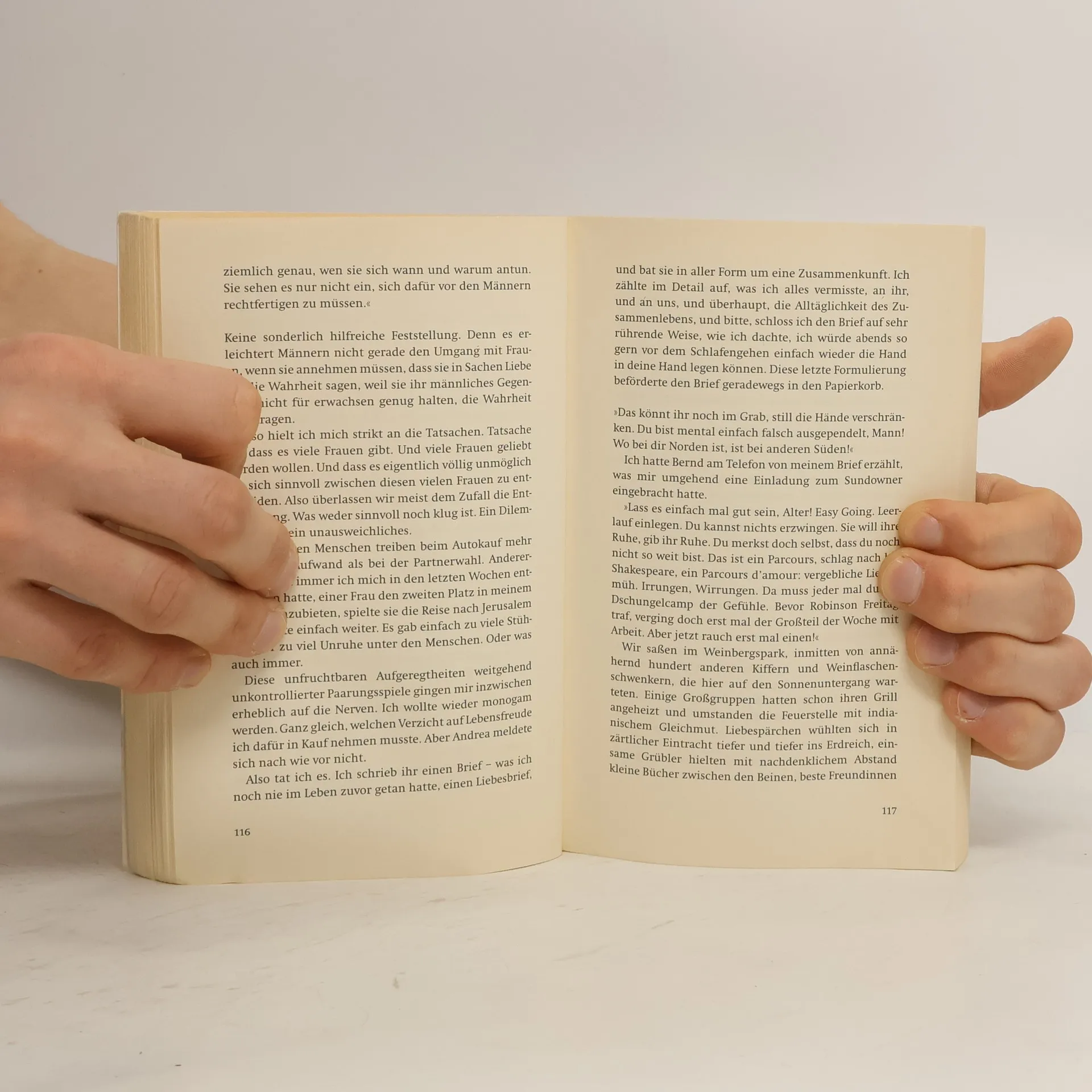 Ein Mann, Ende dreißig, wird Single, unerwartet, denn eigentlich hielt er die Routine seiner Ehe für eine gelungene Annäherung ans Glück. Doch seine Frau sah das wohl anders. Tapfer begibt er sich auf den Leidensparcour des einsamen, aber paarungswilligen Großstädters: Er wird Opfer der Singlebörsianer, scheitert an den Spielregeln des Datings, des Flirtens, des Beischlafs mit Kondom. Er leidet mit alleinerziehenden Müttern, beweist Ehrgeiz bei Karrierefrauen, hinterlässt vergeblich seine Telefonnummer bei One-Night-Stands und sehnt sich zunehmend heftiger nach dem Ehealltag zurück. Doch gibt Andrea ihm, geläutert, noch eine Chance?