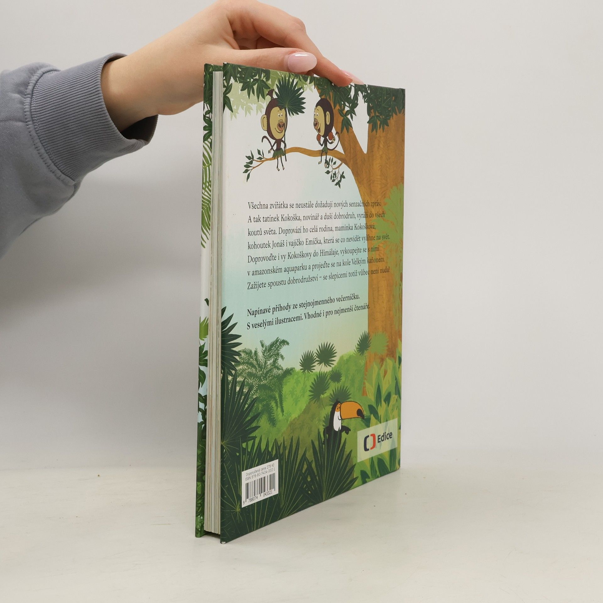 Slepice jsou nejlepší, nejchytřejší z ptáků. Fandi slepicím! Celý zvířecí svět a především krocan, šéfredaktor Slepičích listů, se neustále dožaduje nových senzačních zpráv. A tak tatínek Kokoška, novinář a duší dobrodruh, vyráží za dobrodružstvím do všech koutů světa. Doprovází ho celá rodina, maminka Kokošková, malý kohoutek Jonáš i vajíčko Emička, která se co nevidět vyklube na svět. Doprovoďte i vy Kokoškovi do Himálaje, vykoupejte se s nimi v amazonském aquaparku a projeďte se na kole Velkým kaňonem. Zažijete spoustu dobrodružství a poznáte pestrost mnoha zemí i kontinentů. Se slepicemi totiž vůbec není nuda! Napínavé příhody známé ze stejnojmenného večerníčku doprovázené veselými ilustracemi jsou vhodné i pro nejmenší čtenáře.