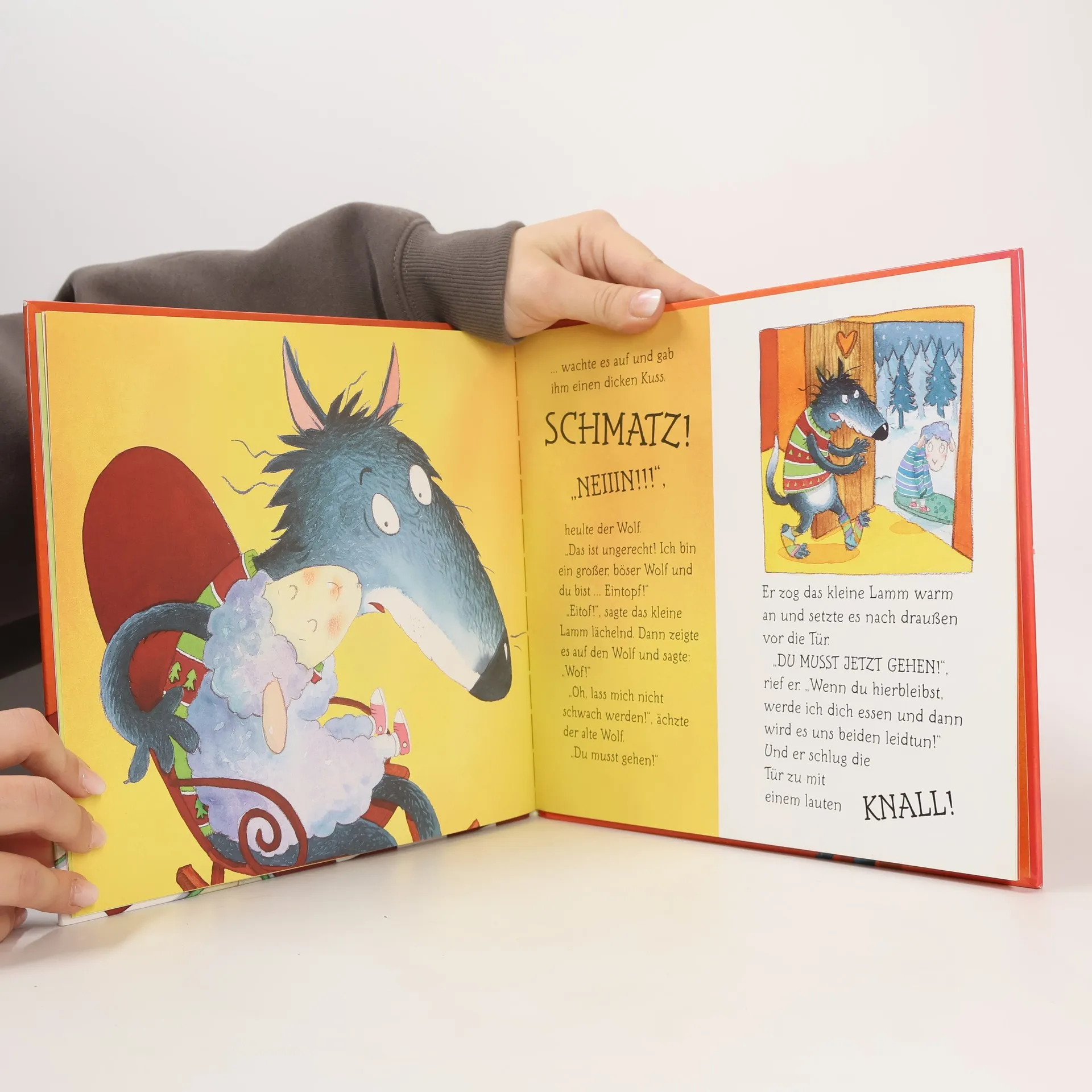 ‚Lecker, Lammeintopf!', denkt sich der hungrige Wolf begeistert, als ein kleines Lamm vor seiner Tür steht. Das passende Rezept im Kopf beginnt er, das köstliche Gericht vorzubereiten. Doch dann gerät er ganz durcheinander: Was tun, wenn einen das geplante Abendessen lieb anlächelt und einem freundschaftlich um den Hals fällt? Und das, während man gerade über die richtige Zubereitungsart nachgrübelt! Aber am Ende gelingt das Essen doch und es schmeckt dem Wolf ganz ausgezeichnet …