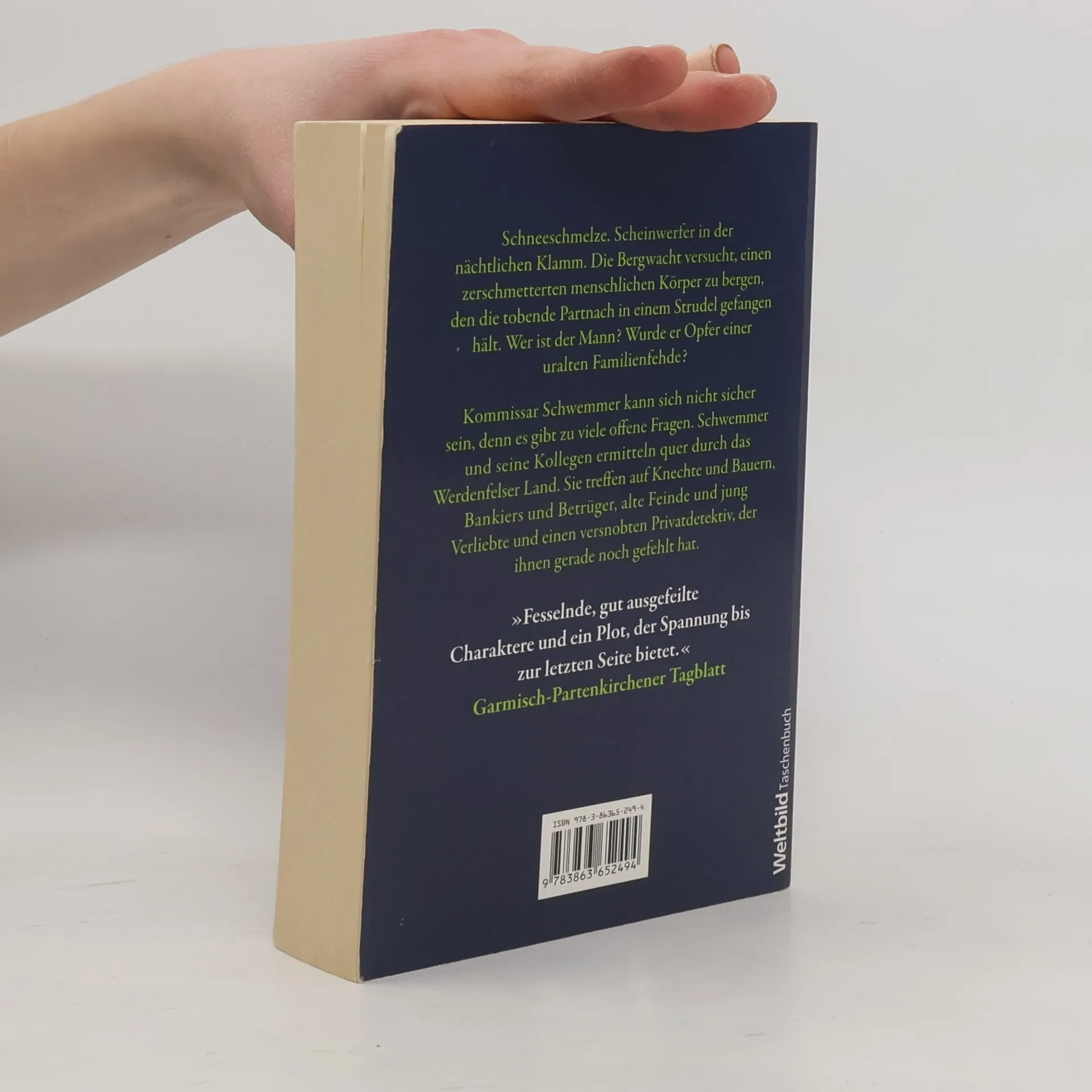 Schneeschmelze, Scheinwerfer in der nächtliche Klamm. Die Bergwacht versucht, einen zerschmetterten menschlichen Körper zu bergen, den die tobende Partnach in einem Strudel gefangen hält. Wer ist der Mann? Wurde er Opfer einer uralten Familienfehde? Kommissar Schwemmer kann sich nicht sicher sein, denn es gibt zu viele offene Fragen: Wer hat Geld unterschlagen? Wer manipuliert Autos? Wer vergiftet Hunde? Und vor allem: Wer lügt? Schwemmer und sein Kollege Schafmann ermitteln quer durch das Werdenfelser Land. Sie treffen auf Knechte und Bauern, Bankiers und Betrüger, alte Feinde und jung verliebte und einen versonbten Privatdetektiv, der ihnen gerade noch gefehlt hat.