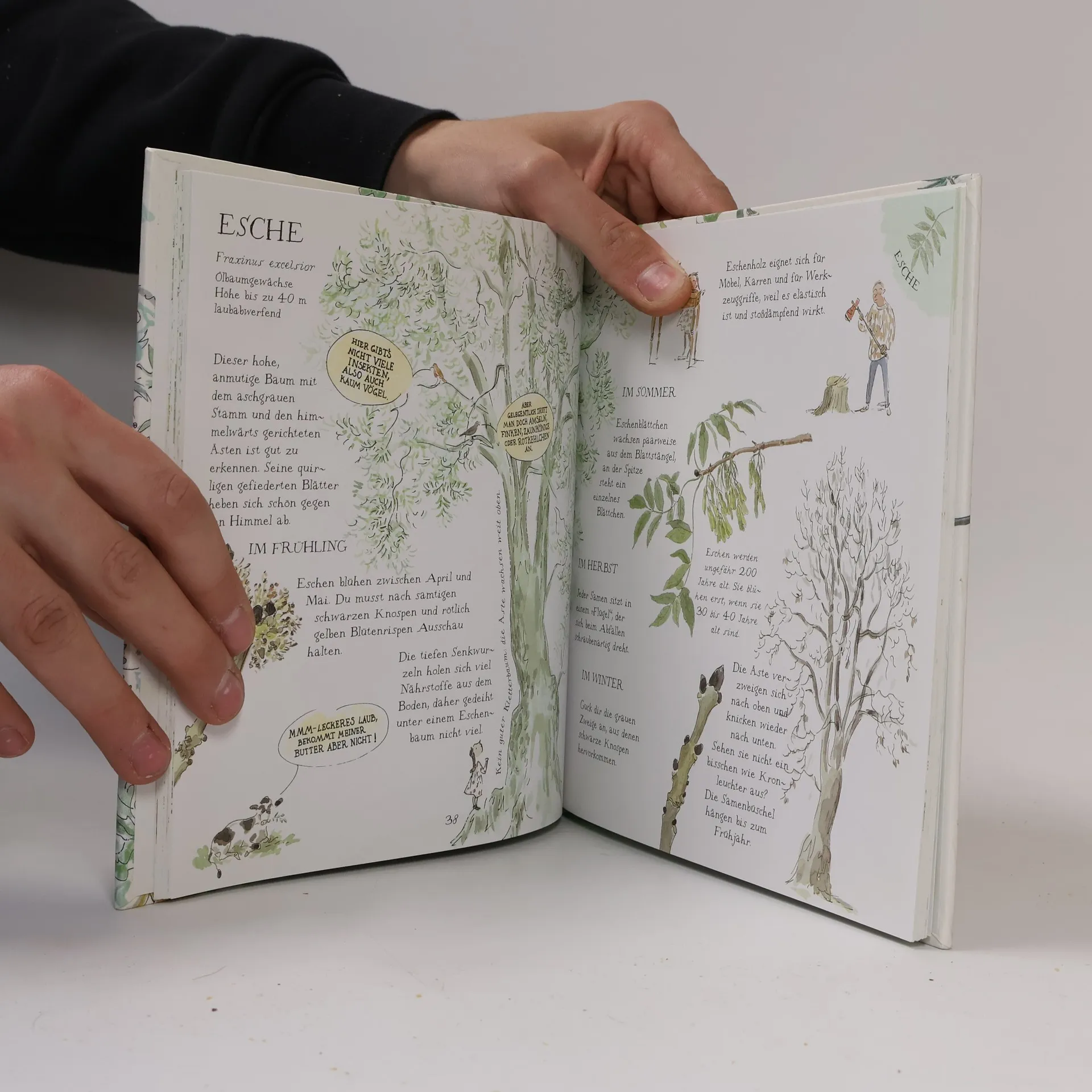 Wie sehen die Blätter einer Platane aus? Woran erkennt man eine Lärche? Wie unterscheidet sich eine Buche von einer Hainbuche? Aus welchem Holz sind die Masten alter Segelschiffe? Und welche Bäume wachsen in Obstgärten? Dieses sorgfältig recherchierte Bestimmungsbuch verrät anschaulich und gleichzeitig spielerisch, was diese grünen Riesen auszeichnet, und macht Lust, sie genauer unter die Lupe zu nehmen. Rund 40 Bäume werden im Wechsel der Jahreszeiten vorgestellt und durch die filigranen und zugleich präzisen Illustrationen von Charlotte Voake porträtiert. Im hinteren Teil des Buches ist außerdem Platz für eigene Baumstudien. Illustrationen und Ausstattung machen dieses Bestimmungsbuch gleichzeitig zu einem zauberhaften Geschenkbuch.