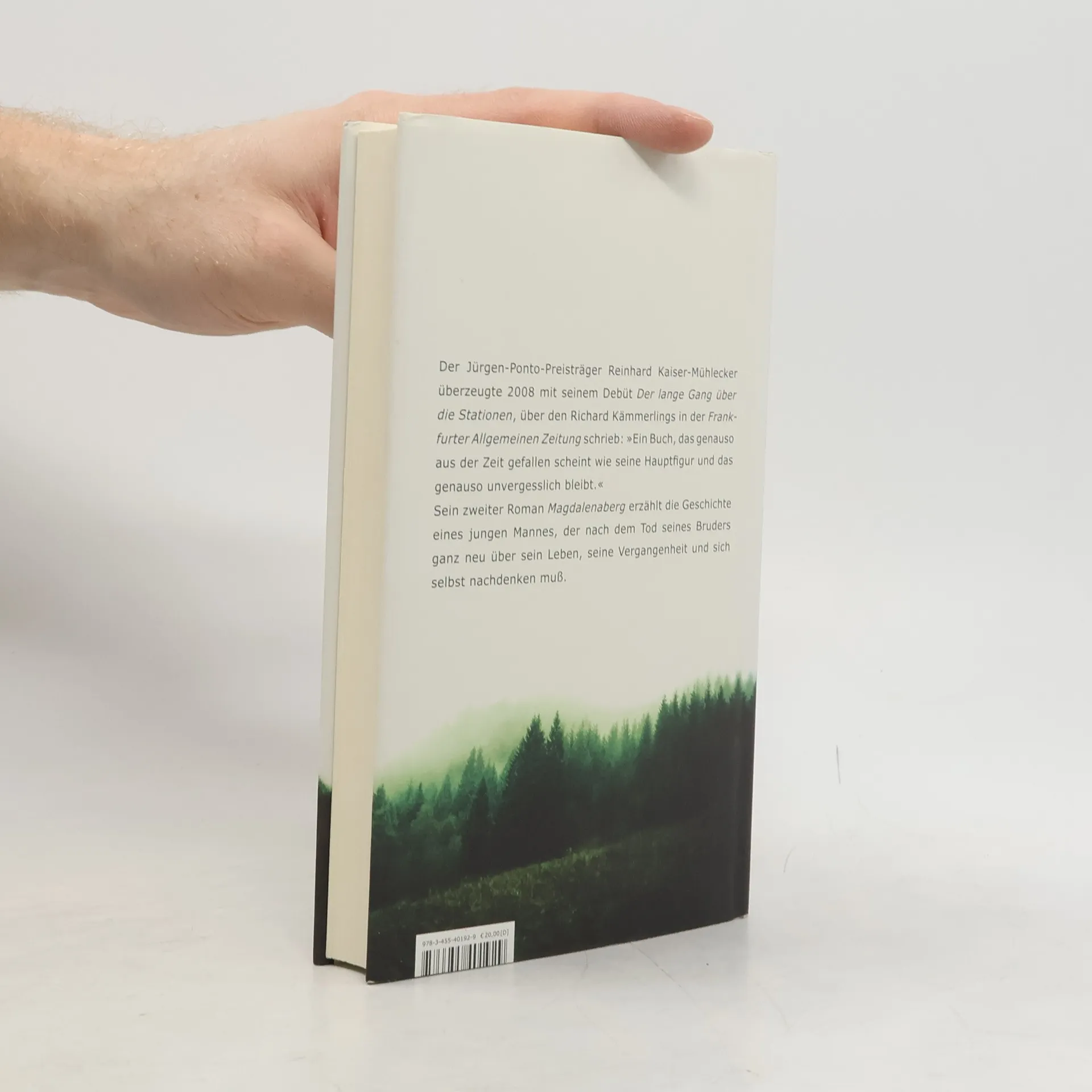 Der Jürgen-Ponto-Preisträger Reinhard Kaiser-Mühlecker überzeugte 2008 mit seinem Debüt „Der lange Gang über die Stationen“, über den Richard Kämmerlings in der Frankfurter Allgemeine Zeitung schrieb: „Ein Buch, das genauso aus der Zeit gefallen scheint wie seine Hauptfigur, und das genauso unvergesslich bleibt.“ Sein zweiter Roman Magdalenaberg erzählt die Geschichte eines jungen Mannes, der nach dem Tod seines Bruders ganz neu über sein Leben, seine Vergangenheit und sich selbst nachdenken muss.