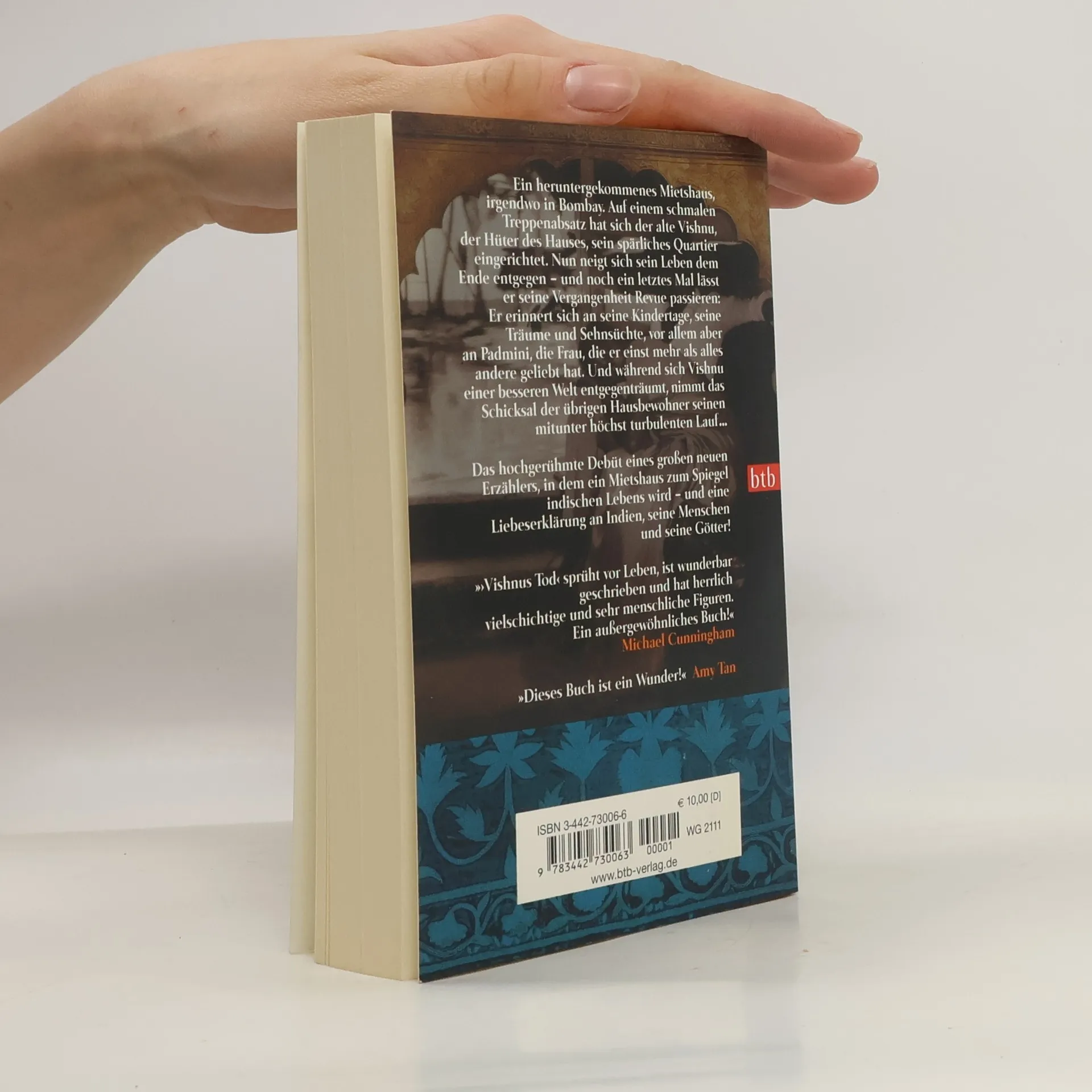 Kastendenken, exzessive Armut, der Zusammenprall verschiedener Religionen -- Indien, ein Land, aus dem die exotischsten Märchen kommen, in dem es Prinzessinnen gibt und Kinder, die in der Kloake spielen, ein Land in dem Widersprüche fast in Reinform nebeneinander existieren. Wir befinden uns in Bombay und werden von Autor Manil Suri in die Welt der ganz Armen geführt, die neben den weniger Armen zu existieren versuchen. Ein Mietshaus, einfache Menschen, meist älter, verheiratet oder allein. Sie leben in den Wohnungen des Hauses. Daneben gibt es noch weitere Mitbewohner, und zwar die, die sich im Treppenhaus eingerichtet haben. Zu ihnen gehört Vishnu. Er haust auf dem untersten Treppenabsatz und ist sehr krank. Alle rechnen mit seinem baldigen Tod. Vishnus letzte Wahrnehmungen beschwören Erinnerungen an seine Kindheit und seine Jugendliebe herauf; seine Seele beginnt, sich von seinem Körper zu lösen, um die Treppen in eine überirdische Helligkeit hinaufzusteigen. Daneben lernen wir die Bewohner des Hauses kennen, ihre Ängste, Sorgen, ihren Kleinmut, ihre niederen Beweggründe, wie sie versuchen, ihren haarsträubenden Egoismus vor sich selbst zu rechtfertigen, um einen Aufstieg in die nächste Kaste zu erwirken. Ist es die Armut, die den Menschen gemein macht, ist es die Religion oder sind es einfach nur die zerplatzten Träume?
