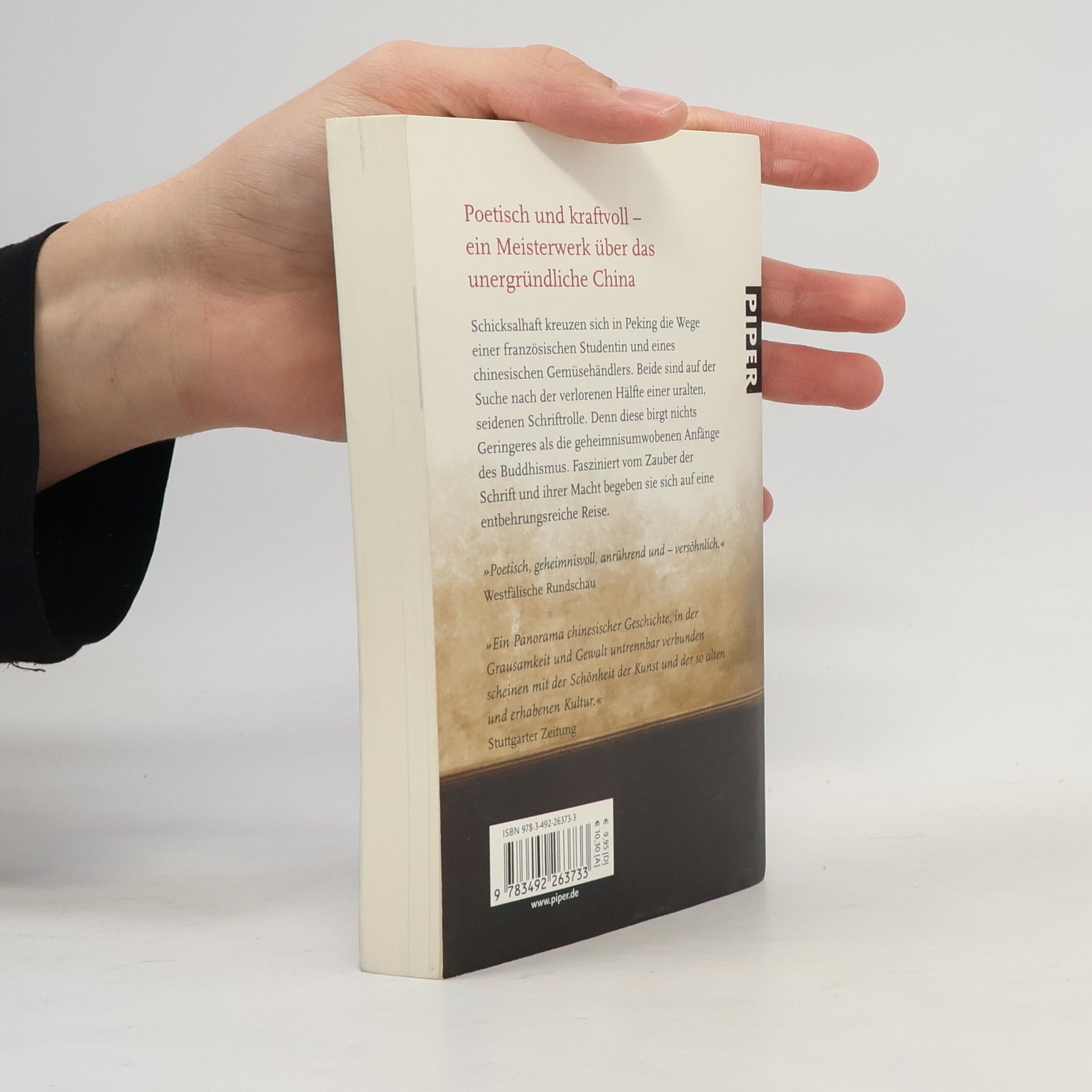 Schicksalhaft kreuzen sich in Peking die Wege einer französischen Studentin und eines chinesischen Gemüsehändlers. Beide sind auf der Suche nach der verlorenen Hälfte einer uralten, seidenen Schriftrolle. Denn diese birgt nichts Geringeres als die geheimnisumwobenen Anfänge des Buddhismus. Fasziniert vom Zauber der Schrift und ihrer Macht begeben sie sich auf eine entbehrungsreiche Reise.