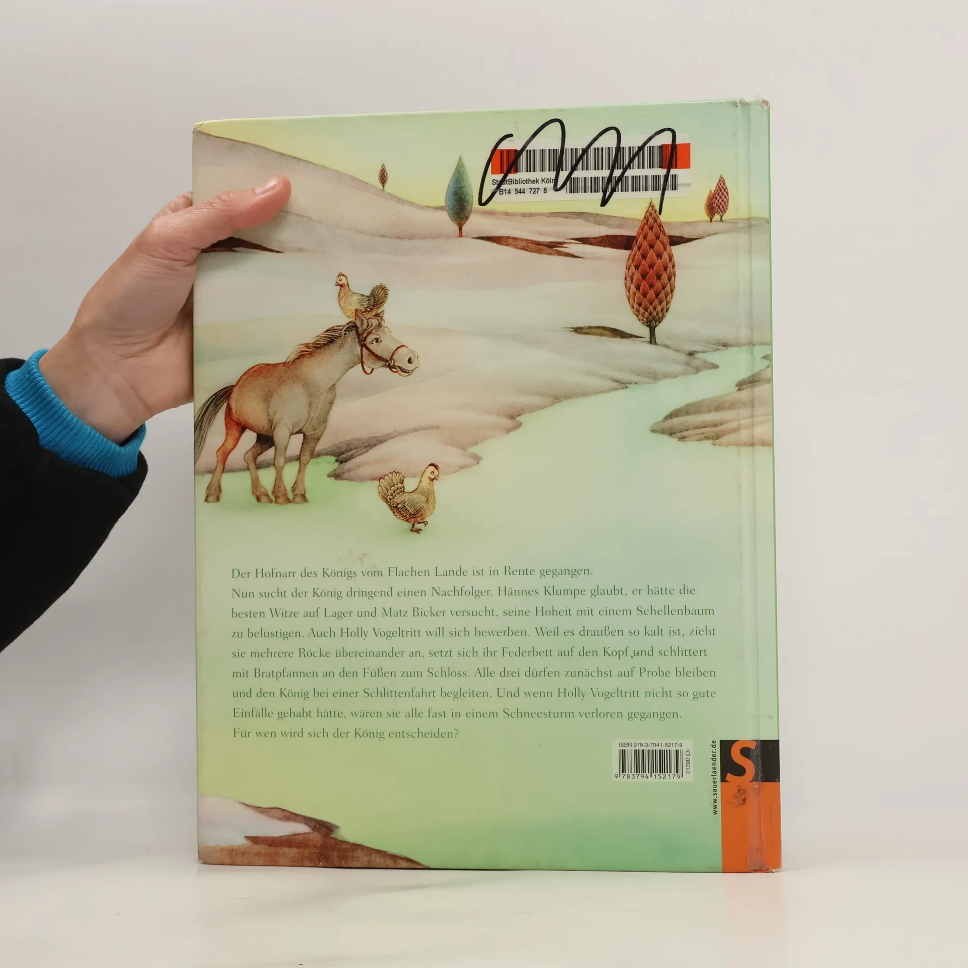 Der Hofnarr des Königs vom Flachen Lande ist in Rente gegangen. Nun sucht der König dringend einen Nachfolger. Hännes Klumpe glaubt, er hätte die besten Witze auf Lager und Matz Bicker versucht, seine Hoheit mit einem Schellenbaum zu belustigen. Auch Holly Vogeltritt will sich bewerben und schlittert mit Bratpfannen an den Füßen in Richtung Schloss. Aber das königliche Casting führt zu keiner Entscheidung. Erst als Holly Vogeltritt durch ihren Mut und ihre guten Einfälle sie alle davor bewahrt, bei einem Schneesturm verloren zu gehen, weiß der König, wen er bei sich behalten will.