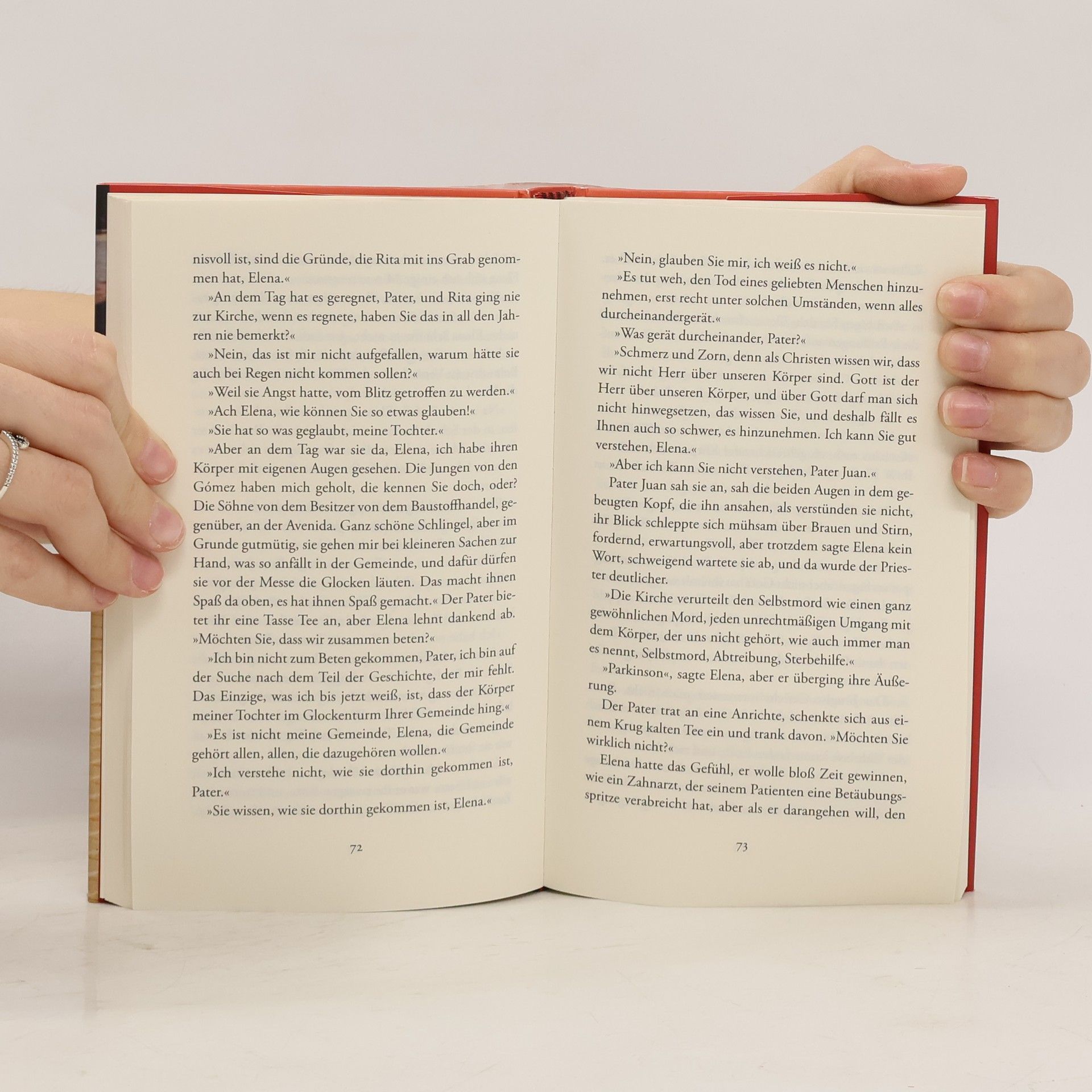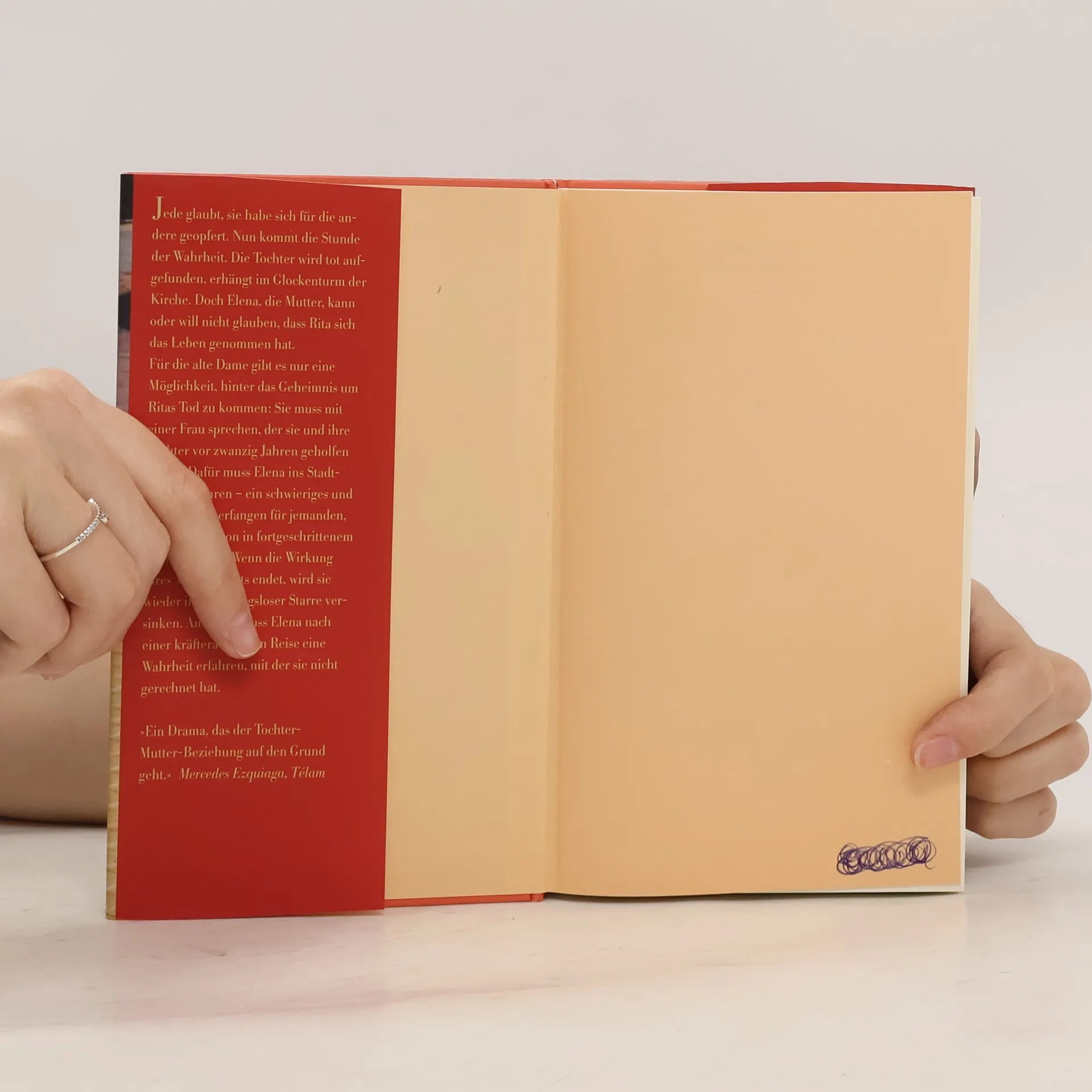 Jede glaubt, sie habe sich für die andere geopfert. Nun kommt die Stunde der Wahrheit. Die Tochter wird tot aufgefunden, erhängt im Glockenturm der Kirche. Doch Elena, die Mutter, kann oder will nicht glauben, dass Rita sich das Leben genommen hat. Für die alte Dame gibt es nur eine Möglichkeit, hinter das Geheimnis um Ritas Tod zu kommen: Sie muss mit einer Frau sprechen, der sie und ihre Tochter vor zwanzig Jahren geholfen haben. Dafür muss Elena ins Stadtzentrum fahren – ein schwieriges und riskantes Unterfangen für jemanden, der an Parkinson in fortgeschrittenem Stadium leidet. Wenn die Wirkung ihres Medikaments endet, wird sie wieder in bewegungsloser Starre versinken. Am Ende muss Elena eine Wahrheit erfahren, mit der sie nicht gerechnet hat.