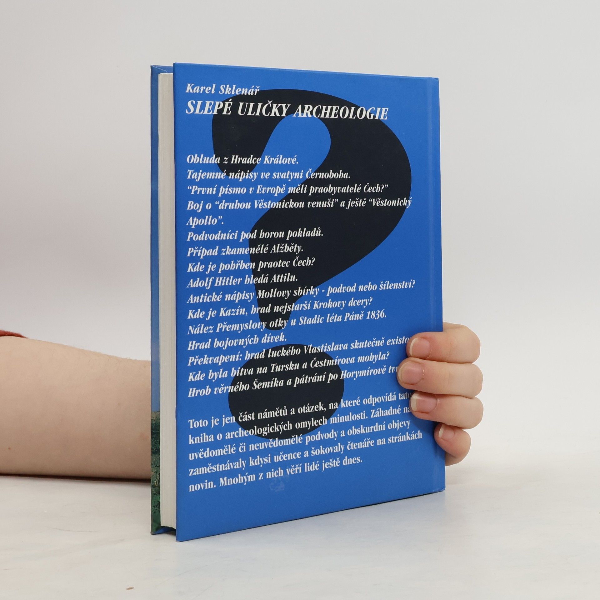 V knížce, která představuje „jakýsi malý výběrový slovník archeologických omylů minulosti“, seznamuje autor s řadou zajímavých problémů, jimž světová a zejména česká archeologie věnovala značnou pozornost, ale které pro vlastní vědecké poznání nemají praktický význam. Vypráví o nálezech pravěkého písma, o domnělých památkách paleolitu, o hrobech slavných osobností, o římských památkách v Čechách a na Moravě, o archeologických falzech aj.