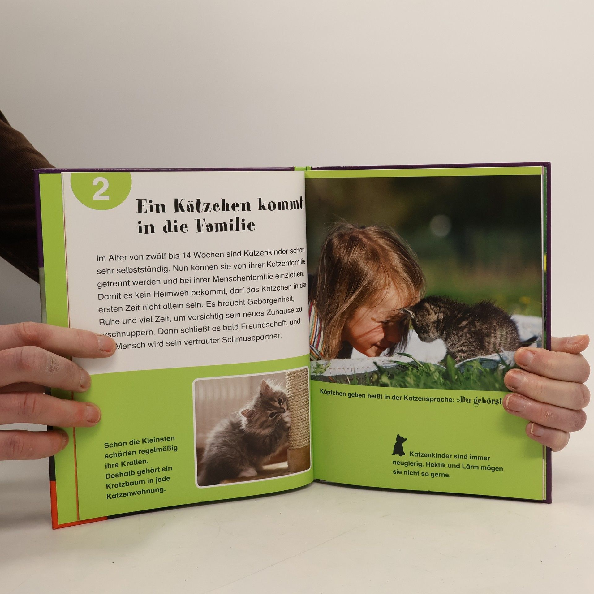 Katzen – Freunde auf Samtpfoten. Sie sind selbstständig, immer wachsam, und wenn sie jemanden gern haben, streichen sie ihm um die Beine. Marlies Borchardt und Heike Schmidt-Röger erzählen von großen und kleinen Katzen. Wir erfahren, wie ein Katzenkind aufwächst, weshalb Katzen nachts am liebsten draußen unterwegs sind und wie wir ihr Vertrauen gewinnen können. Hinter dem Bogen mit den bunten Aufklebern kann jeder seine persönliche Geschichte mit seiner Lieblingskatze festhalten – und nicht vergessen, hier ist auch Platz für ein Foto!