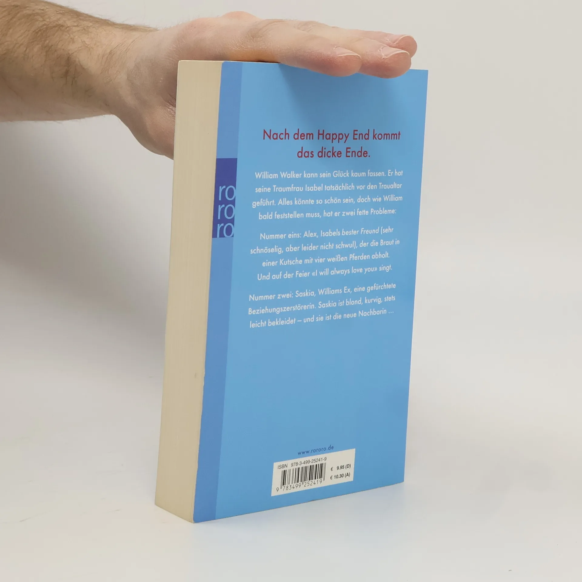 Nach dem Happy End kommt das dicke Ende. William Walker kann sein Glück kaum fassen. Er hat seine Traumfrau Isabel tatsächlich vor den Traualtar geführt. Alles könnte so schön sein, doch wie William bald feststellen muss, hat er zwei fette Probleme: Nummer eins: Alex, Isabels bester Freund (sehr schnöselig, aber leider nicht schwul), der die Braut in einer Kutsche mit vier weißen Pferden abholt. Und auf der Feier «I will always love you» singt. Nummer zwei: Saskia, Williams Ex, eine gefürchtete Beziehungszerstörerin. Saskia ist blond, kurvig, stets leicht bekleidet – und sie ist die neue Nachbarin ...
