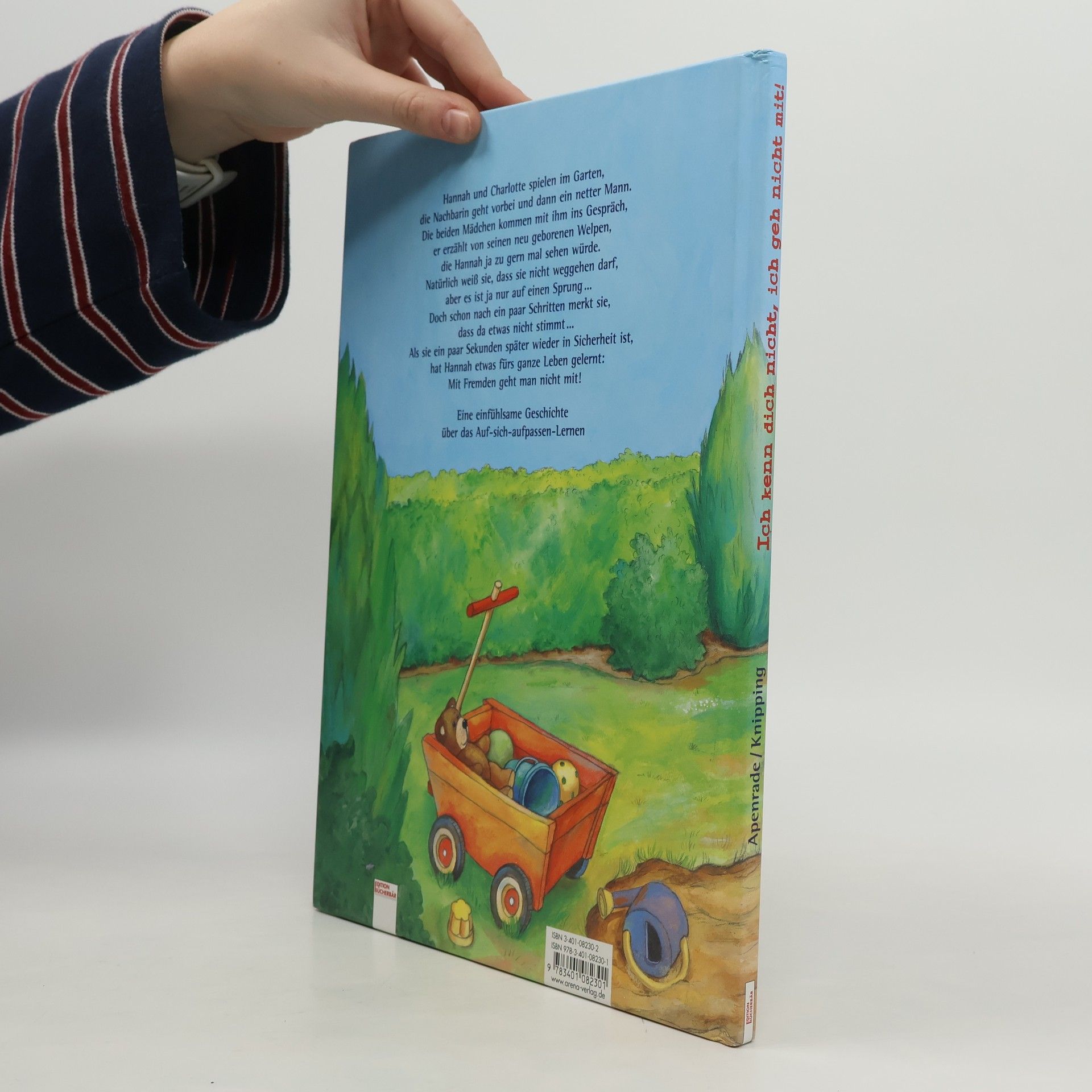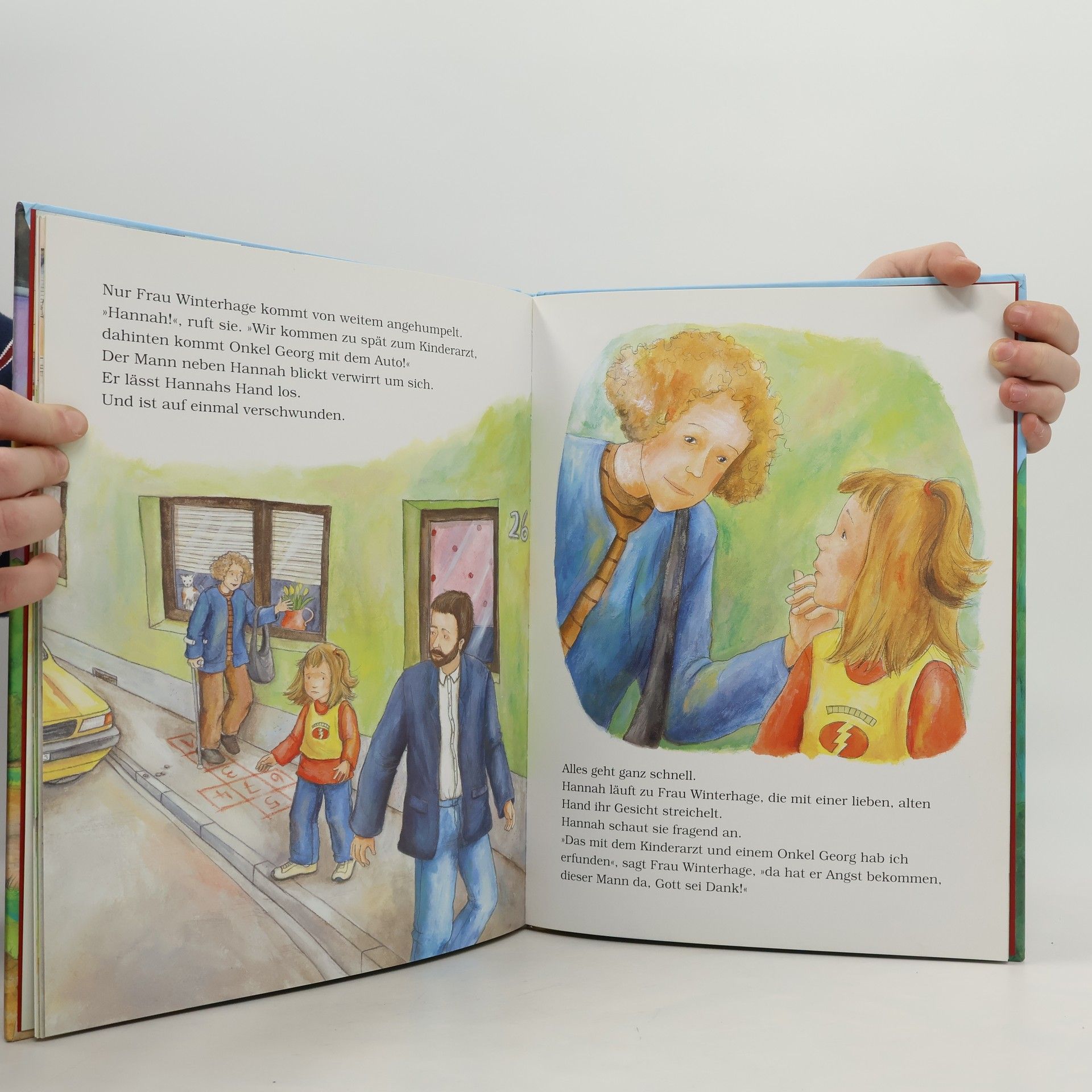 Hannah und Charlotte spielen im Garten, die Nachbarin geht vorbei und dann ein netter Mann. Die beiden Mädchen kommen mit ihm ins Gespräch, er erzählt von seinen neu geborenen Welpen, die Hannah ja zu gern mal sehen würde. Natürlich weiß sie, dass sie nicht weggehen darf, aber es ist ja nur auf einen Sprung. Doch schon nach ein paar Schritten merkt sie, dass da etwas nicht stimmt. Als sie ein paar Sekunden später wieder in Sicherheit ist, hat Hannah etwas fürs ganze Leben gelernt: Mit Fremden geht man nicht mit!