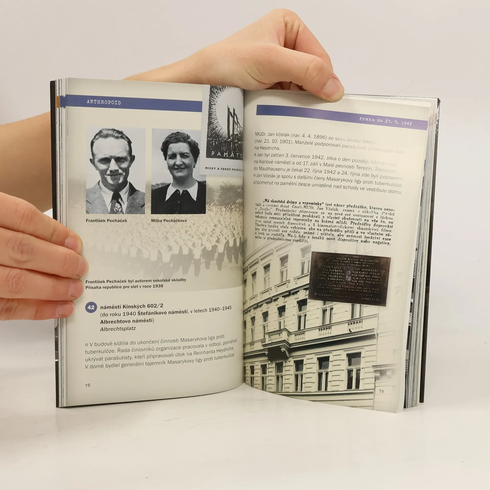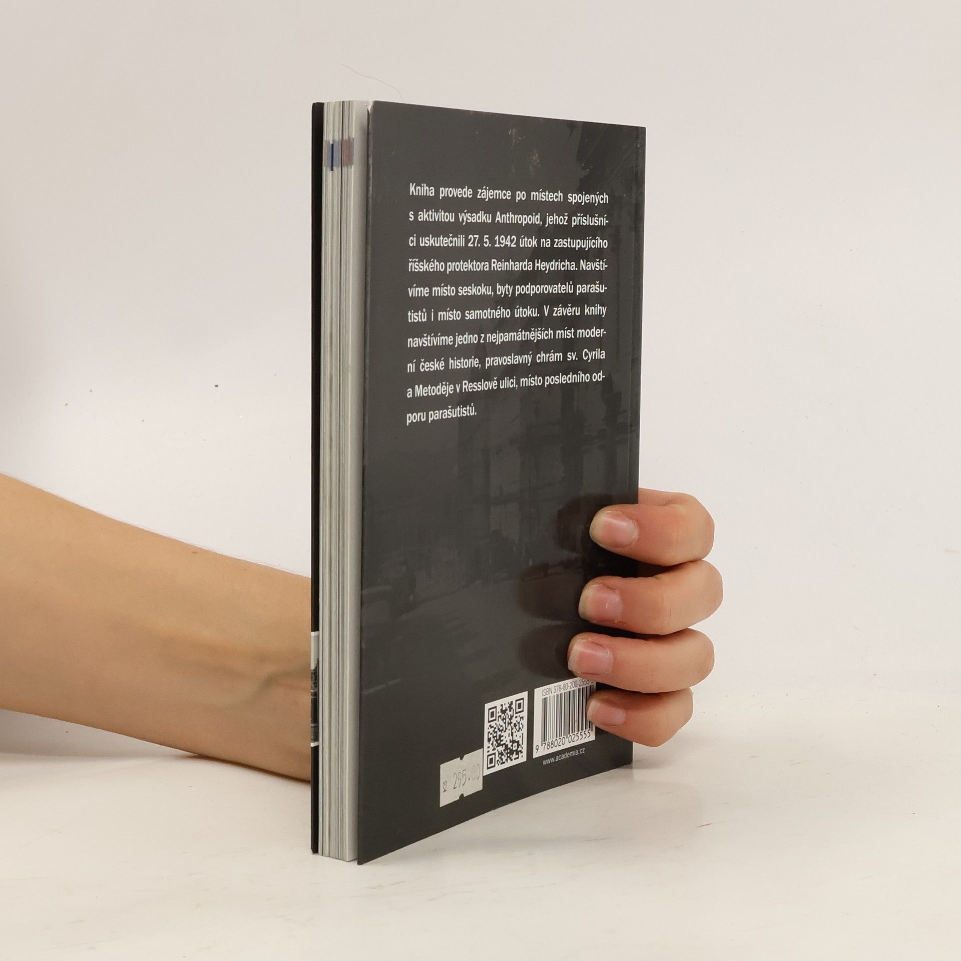 Kniha mapuje místa spojená s aktivitou parašutistického výsadku, jehož příslušníci uskutečnili v r. 1942 atentát na zastupujícího říšského protektora Reinharda Heydricha. Publikace je chronologicky rozdělena do 3 oddílů - první popisuje mimopražské lokality, v nichž se parašutisté pohybovali od seskoku v Nehvizdech 29. 12. 1941 do přesunu do Prahy, druhý se věnuje jejich pobytu v Praze do 27. 5. 1942 a třetí přibližuje místa spjatá s vlastní akcí, útěkem a skrýváním atentátníků až po jejich boj s německými jednotkami v obklíčeném kostele sv. Cyrila a Metoděje v Resslově ulici, Heydrichovou smrtí a pátráním gestapa a represemi vůči podporovatelům a rodinným příslušníkům parašutistů. V závěru najdou čtenáři fotografie rodných domků sedmi výsadkářů včetně snímků pamětních desek a seznam jmen lidí popravených v souvislosti s pomocí při přípravě útoku. Objekty označené názvem ulice v češtině a v němčině a číslem popisným i orientačním jsou v jednotlivých oddílech průvodce číslovány a vyznačeny v mapách, které oddílům předcházejí. Text doprovází řada fotografií osob, domů, pamětních desek i dokumentů.