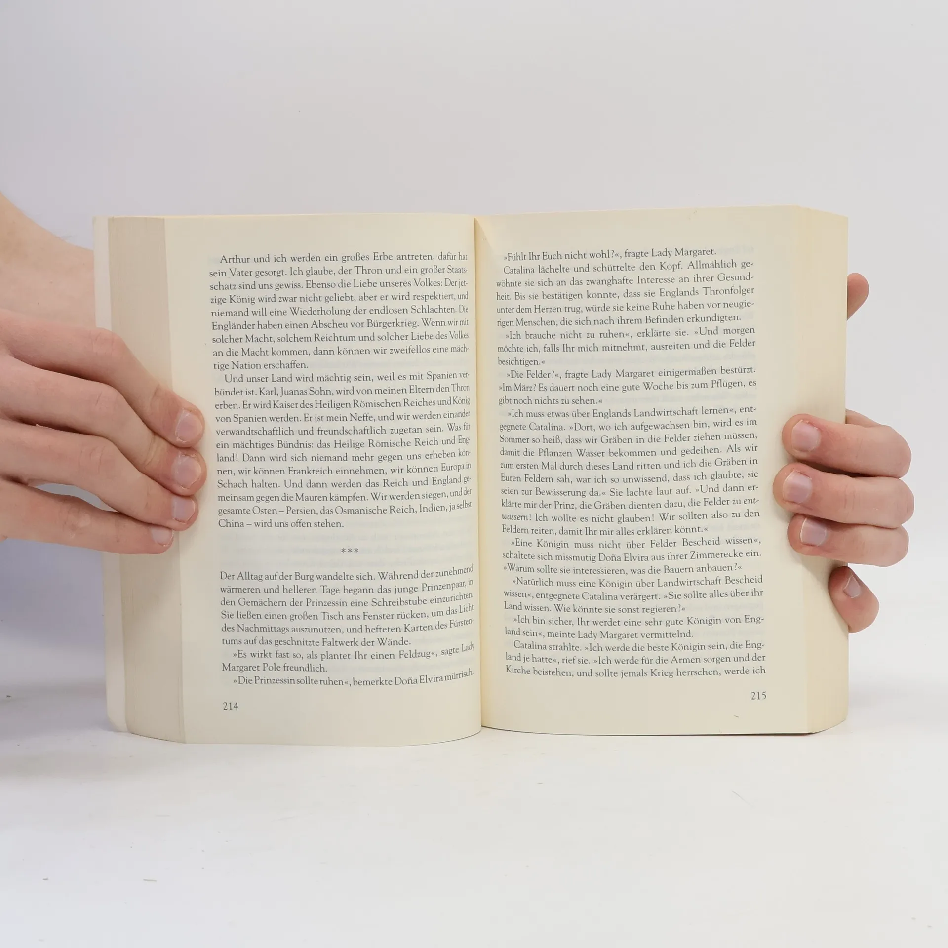 Katharina von Aragón ist erst 14 Jahre alt, als sie den Thronfolger Englands heiraten muss. Sie verlässt ihr Heimatland Spanien, und damit alles, was sie liebt. Am englischen Hof, wo spürbar schroffere Sitten herrschen, sehnt sie sich zurück nach Badekultur und exotischen Früchten, nach luftigen Gewändern und lauen Sommernächten. Katharina wird die erste Frau Heinrichs VIII. Als Erste lernt sie den tyrannischen Herrscher aus nächster Nähe kennen, als Erste leidet sie unter seinen unzähligen Liebschaften, und als Erste erfährt sie, was es bedeutet, ihm keinen Sohn schenken zu können – ein Schicksal, von dem nicht nur ihre Ehe, sondern die Zukunft eines ganzen Landes abhängt …