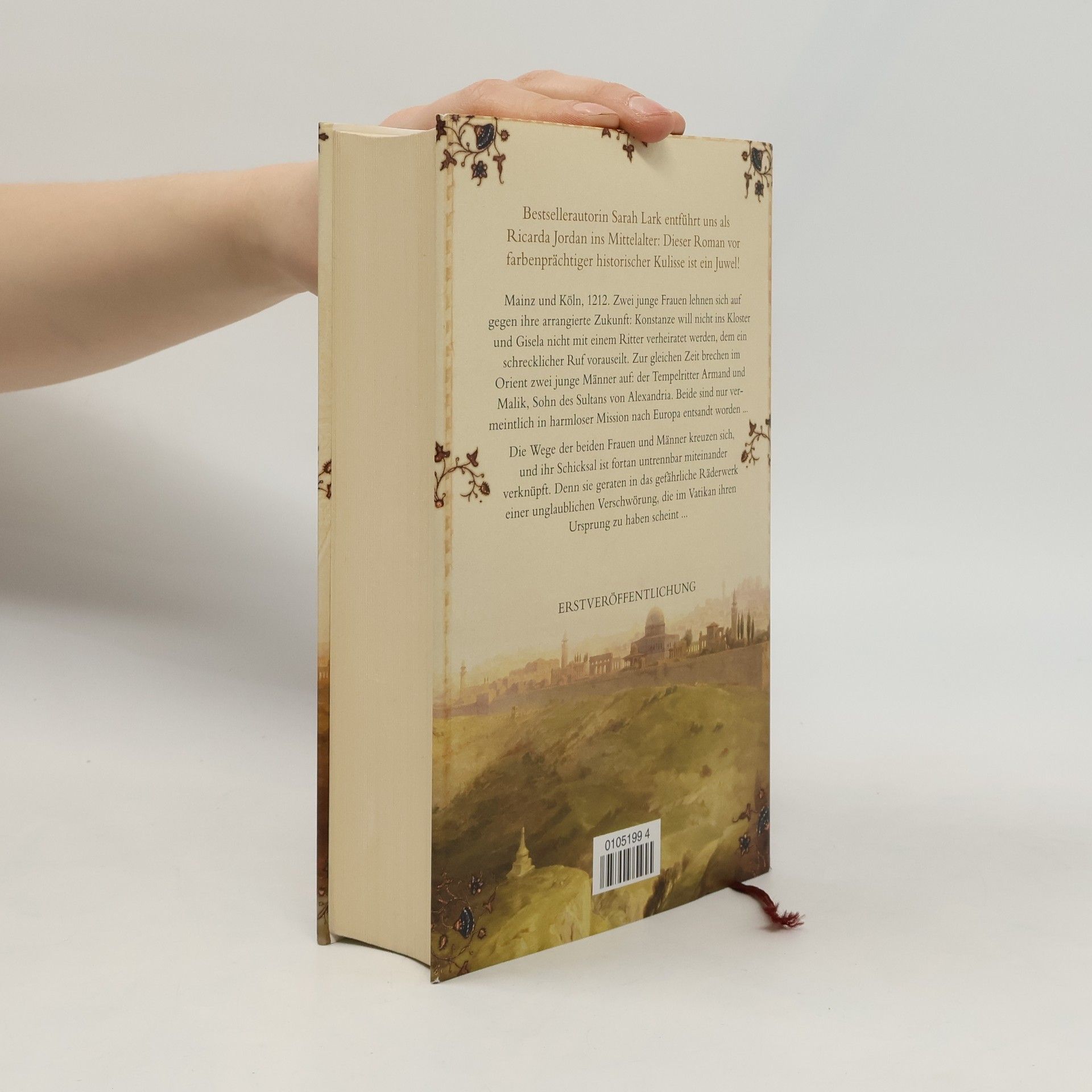 Mainz und Köln, 1212. Zwei junge Frauen lehnen sich auf gegen ihre arrangierte Zukunft: Konstanze will nicht ins Kloster und Gisela nicht mit einem Ritter verheiratet werden, dem ein schrecklicher Ruf vorauseilt. Zur gleichen Zeit brechen im Orient zwei junge Männer auf: Armand wird vom Großkomtur der Tempelritter mit einem geheimen Auftrag nach Europa entsandt, und der Sultan von Alexandria schickt seinen Sohn Malik auf eine nur scheinbar harmlose Reise... Die Wege der zwei Frauen und der beiden Männer kreuzen sich. Ihr Schicksal ist untrennbar miteinander verknüpft. Ihre Welt gerät aus den Fugen. Und sie geraten in das Räderwerk einer unglaublichen Verschwörung, die im Vatikan ihren Ursprung zu haben scheint ... Bestsellerautorin Sarah Lark schreibt als Ricarda Jordan.