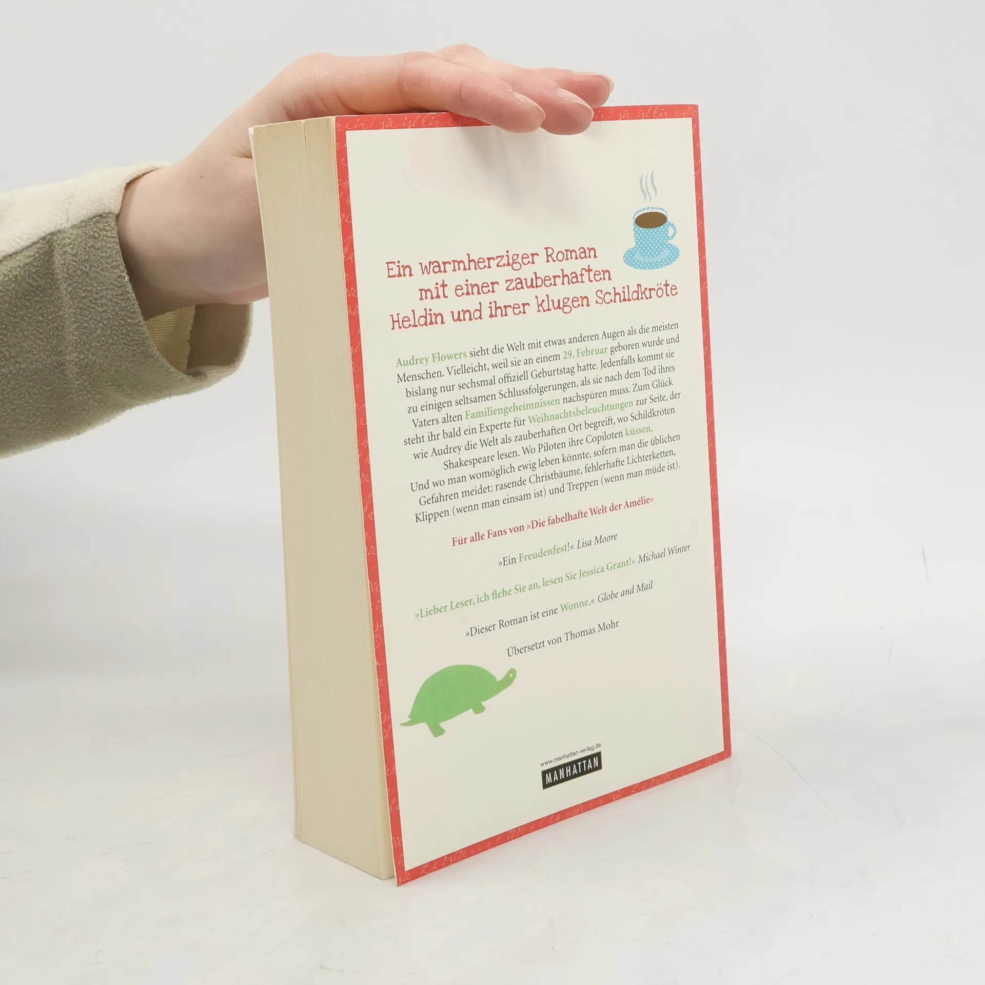 Warmherzig und bezaubernd – ein Roman für alle Fans von 'Die fabelhafte Welt der Amélie' Regel Nr. 1 für Schildkrötenbesitzer: Halte eine Schildkröte niemals für tot. Audrey Flowers vertritt diese optimistische Haltung nicht nur im Blick auf ihre Schildkröte Winnifred. Als Audreys Vater bei einem Unfall schwer verletzt wird, will die junge Frau nicht glauben, dass er tatsächlich sterben könnte. Doch schließlich muss sie nicht nur seinen Tod verarbeiten, sondern auch einige Geheimnisse aufdecken, die er ihr hinterlassen hat. Sie findet heraus, was Toff, den Mann aus Cambridge, mit ihrer Familie verbindet. Und warum Onkel Thoby seit ihrer Kindheit bei ihnen lebt. Außerdem lernt sie einen Experten für Weihnachtsbeleuchtungen kennen, der sich schon bald rührend um sie kümmert. Wie Audrey sieht auch er die Welt als zauberhaften Ort – und das ist sie tatsächlich: Schildkröten lesen Shakespeare. Piloten küssen ihre Copiloten. Und man könnte womöglich ewig leben, sofern man die üblichen Gefahren meidet: rasende Christbäume; fehlerhafte Lichterketten; Klippen, wenn man einsam ist, und Treppen, wenn man müde ist. Ein wunderbarer Roman mit einer zauberhaften Heldin und ihrer klugen Schildkröte.