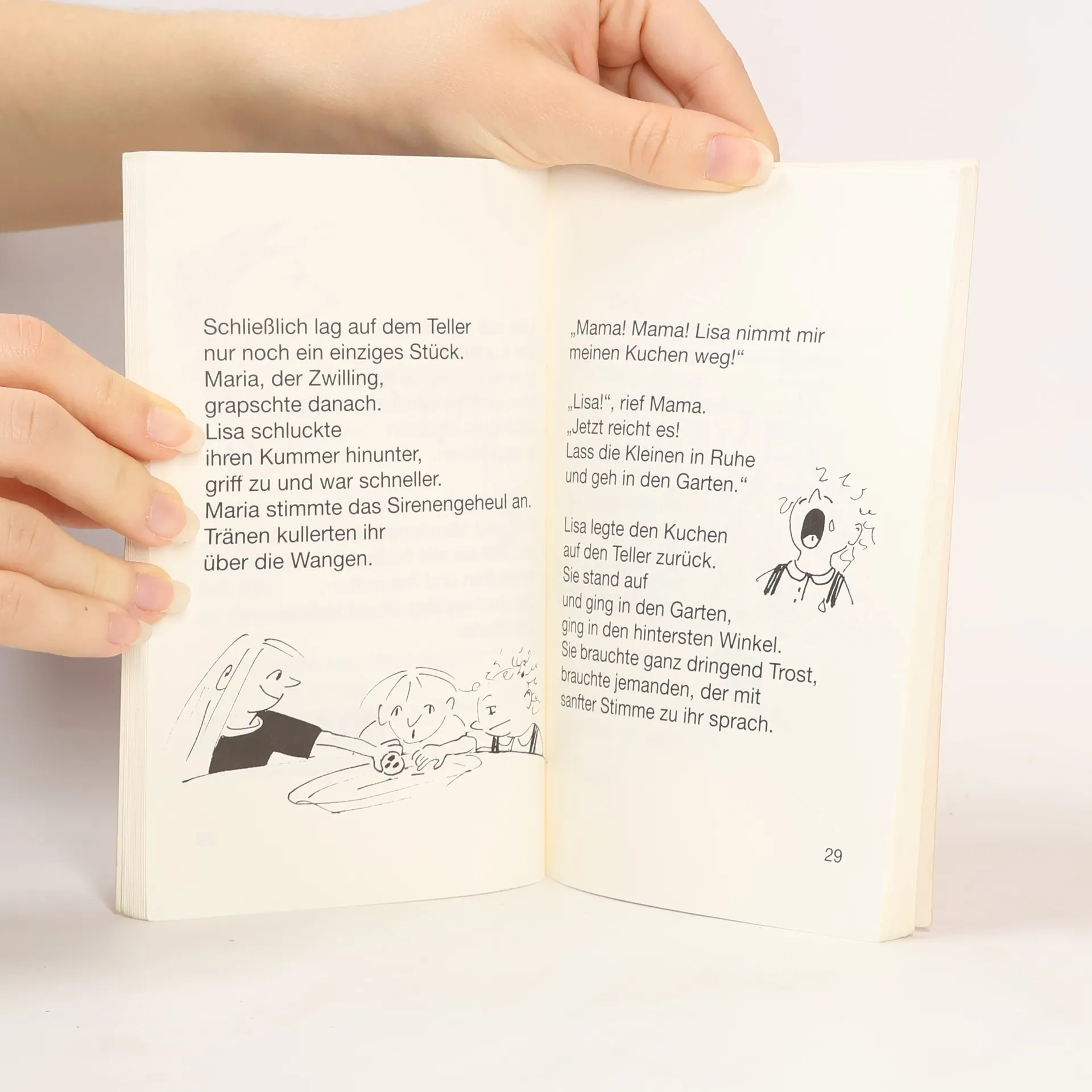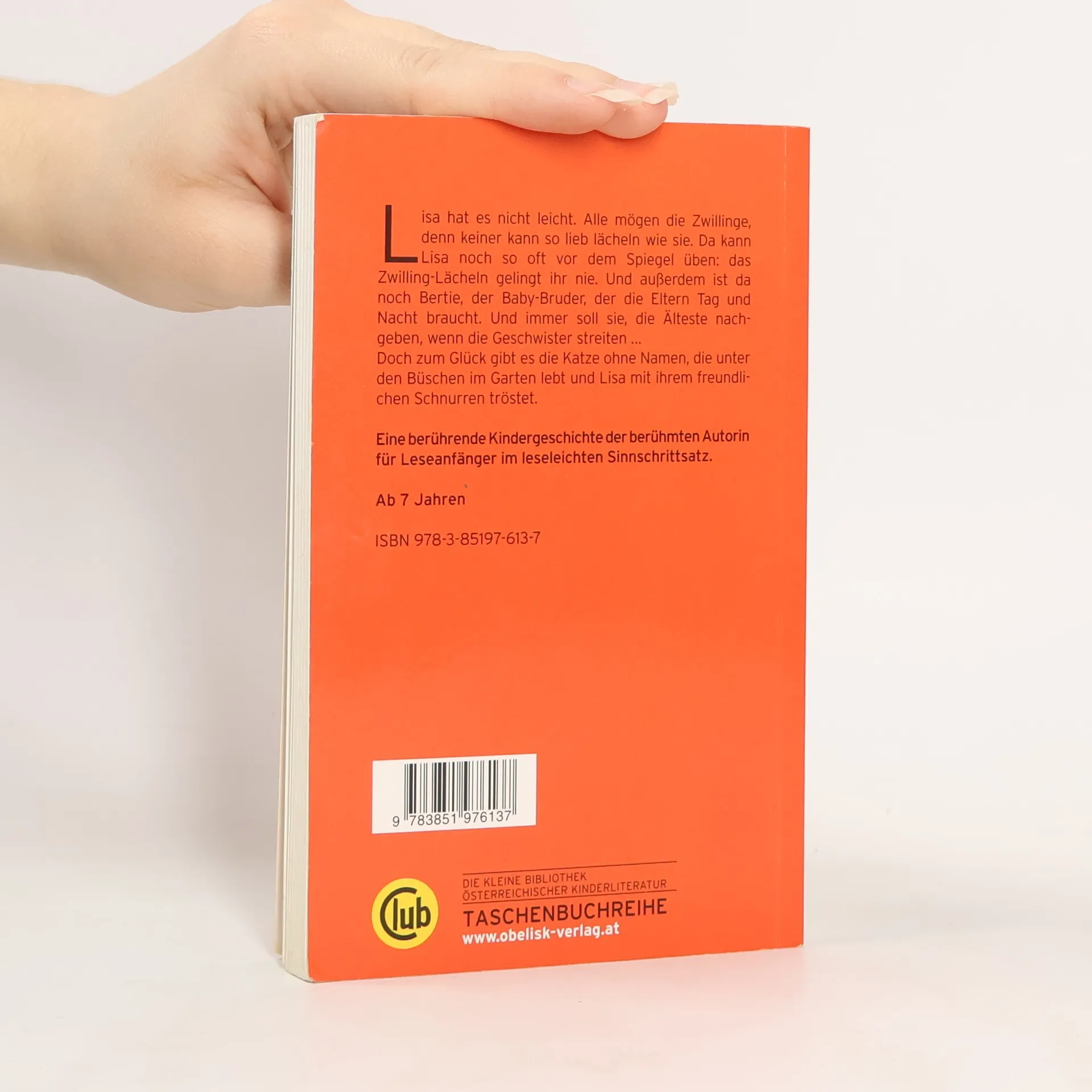 Lisa hat es nicht leicht. Alle mögen die Zwillinge, denn keiner kann so lieb lächeln wie sie. Da kann Lisa noch so oft vor dem Spiegel üben: das Zwilling-Lächeln gelingt ihr nie. Und ausserdem ist da noch Bertie, der Baby-Bruder, der die Eltern Tag und Nacht braucht. Und immer soll sie, die Älteste, nachgeben, wenn die Geschwister streiten. Doch zum Glück gibt es die Katze ohne Namen, die unter den Büschen im Garten lebt und Lisa mit ihrem freundlichen Schnurren tröstet. Doch an dem Tag, als die Onkel und Tanten, die Nichten und Neffen zu Besuch kommen, wird alles anders: Es ist der Tag, an dem Lisa besonders traurig ist, weil niemand sich um sie kümmert. Aber es ist auch der Tag, an dem sich alles ändert. Lisa spürt, daß Bertie, der Baby-Bruder, sie braucht. Und die Katze ohne Namen kommt zum ersten Mal zu ihr ins Haus …