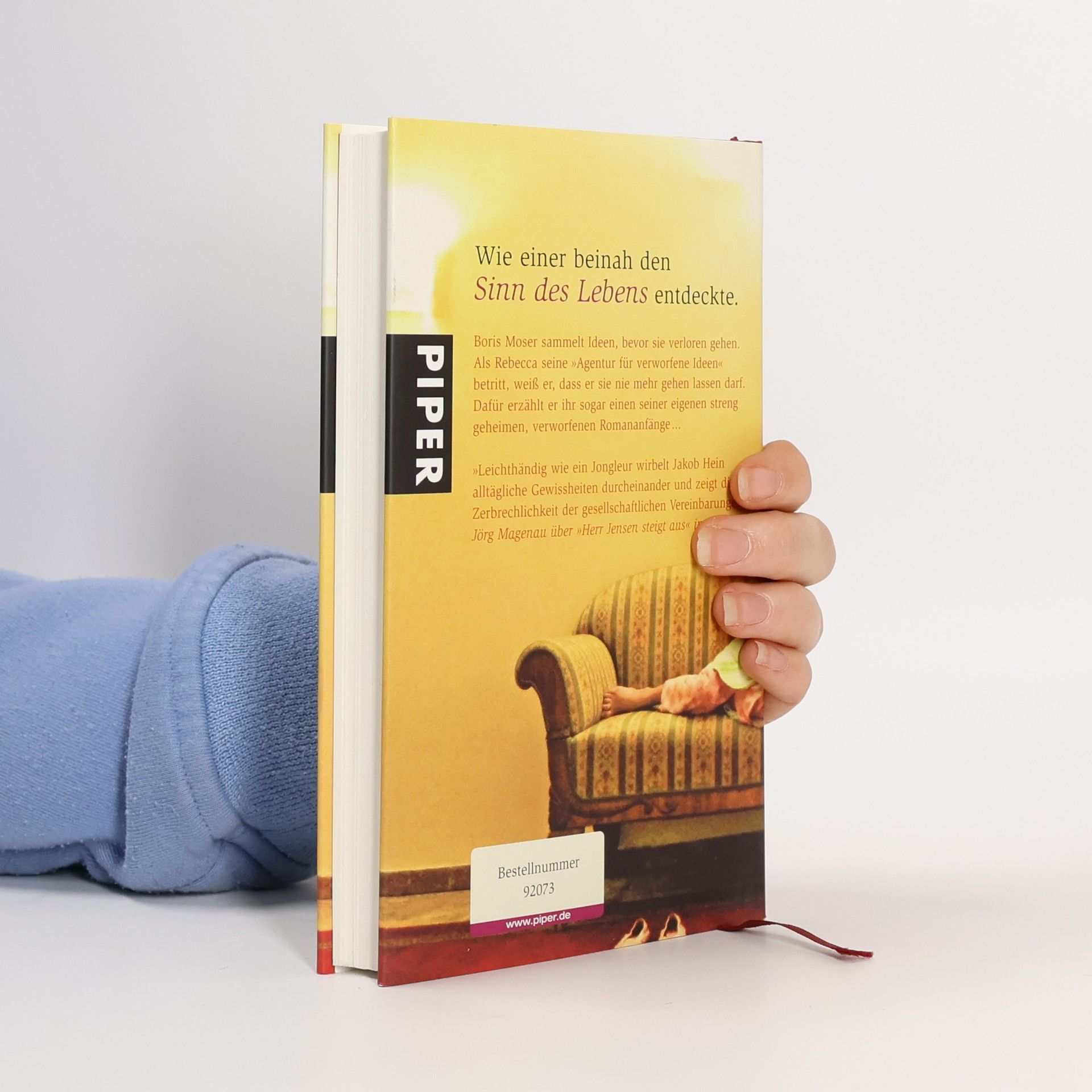 Seit Boris Moser seine Agentur für verworfene Ideen eröffnet hatte, war niemand anderes als er selbst durch die Eingangstür getreten. Nun stand diese Frau vor seinem Schreibtisch, Rebecca. Kastanienbraunes Haar fiel auf ihre Schultern, und ihre Augen leuchteten. Während Boris noch darüber sinnierte, ob ihre elegante Nase ihr einen evolutionären Vorteil einbrachte, sprach Rebecca ihn an. Schlagartig wurde Boris klar, dass er diese Frau nie wieder gehen lassen durfte. Und dann tat er etwas, das er sonst unter allen Umständen vermieden hätte: Er erzählte ihr von einem verworfenen Romananfang. Er erzählte ihr von Sophia, die für ihren Auftraggeber eine Geschichte aufschrieb. Sie handelte von dem Wissenschaftler Heiner, der kurz davor stand, den Sinn des Lebens zu ergründen.