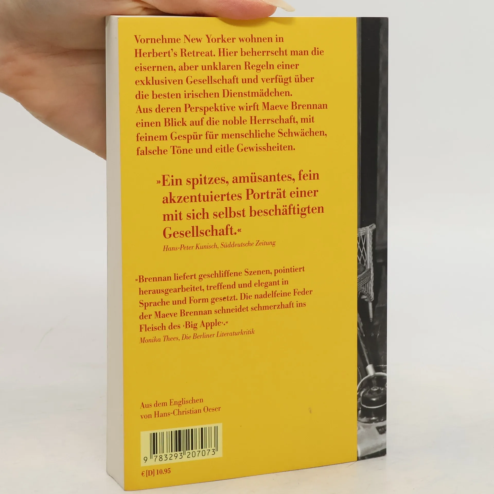 New Yorker, die es sich leisten können, wohnen in Herbert’s Retreat. Hier fährt man Jaguar im Partnerlook, hält sich zur intellektuellen Erbauung einen Theaterkritiker – und beherrscht die Regeln einer exklusiven Gesellschaft, die so eisern wie unklar sind. Vor allem aber verfügt man über eine Aussicht auf den Fluss und über die besten irischen Dienstmädchen. Aus deren Perspektive wirft Maeve Brennan einen Blick auf die noble Herrschaft, mit feinem Gespür für menschliche Schwächen, falsche Töne und eitle Gewissheiten. Bei allem Neid, bei aller Bösartigkeit im Ringen um Status, sind allesamt verlorene Seelen, die versuchen, dem Leben etwas Glück abzutrotzen.