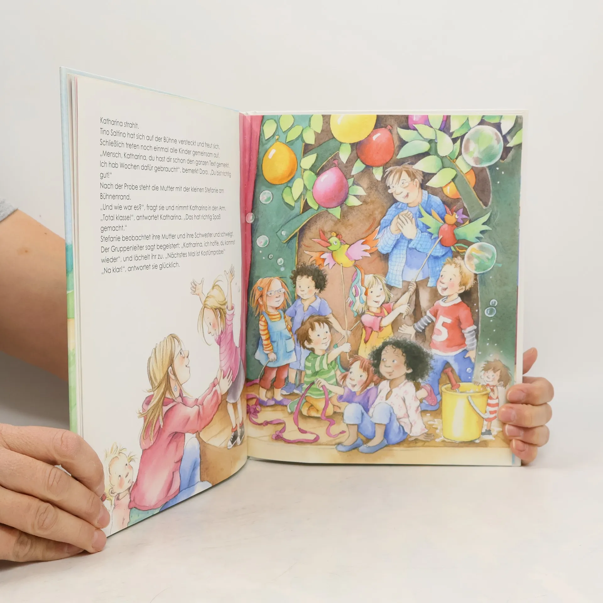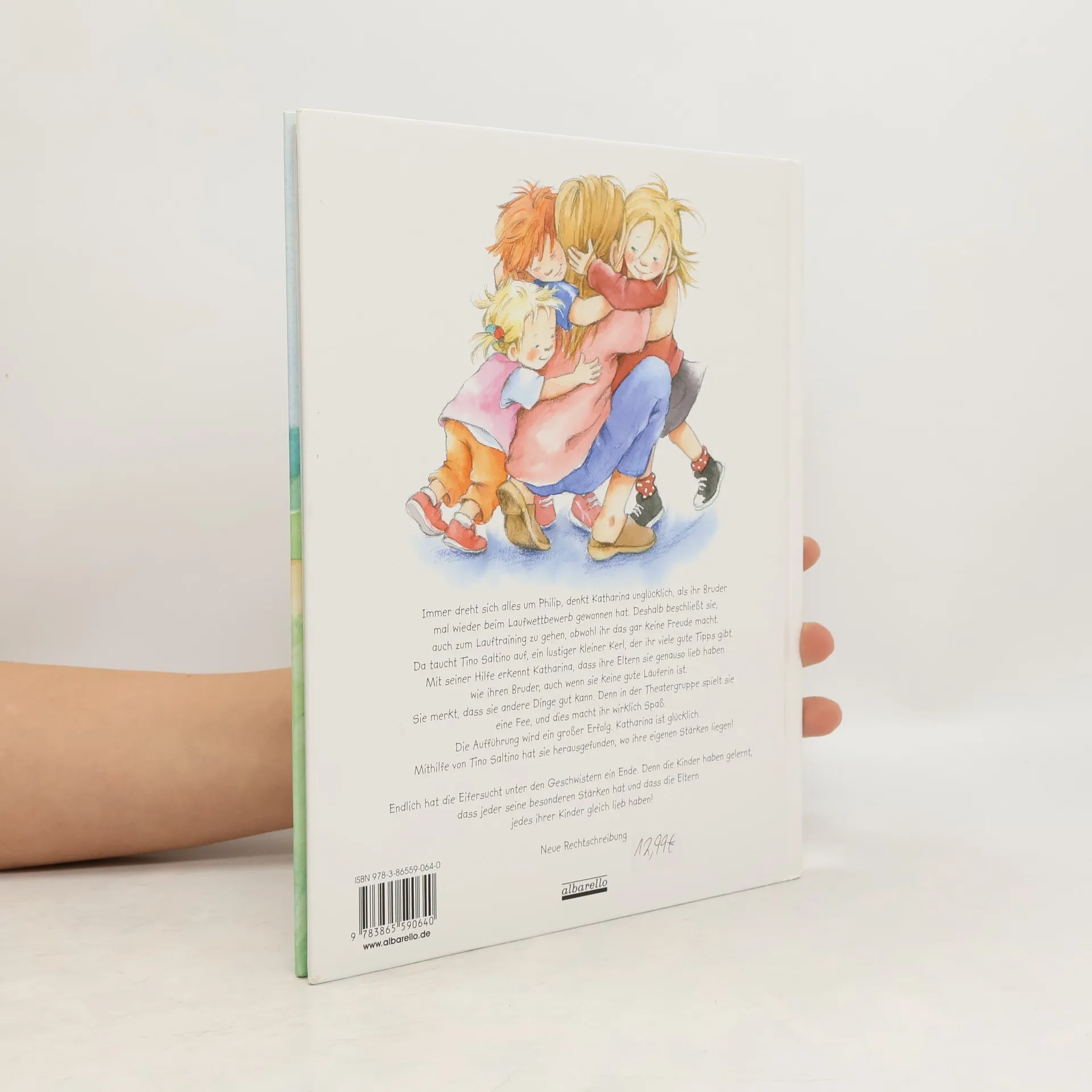 InhaltsverzeichnisImmer dreht sich alles um Philip, denkt Katharina unglücklich, als ihr Bruder mal wieder beim Laufwettbewerb gewonnen hat. Deshalb beschließt sie, auch zum Lauftraining zu gehen, obwohl ihr das gar keine Freude macht. Da taucht Tino Saltino auf, ein lustiger kleiner Kerl, der ihr viele gute Tipps gibt. Mit seiner Hilfe erkennt Katharina, dass ihre Eltern sie genauso lieb haben wie ihren Bruder, auch wenn sie keine gute Läuferin ist. Sie merkt, dass sie andere Dinge gut kann. Denn in der Theatergruppe spielt sie eine Fee, und dies macht ihr wirklich Spaß. Die Aufführung wird ein großer Erfolg. Katharina ist glücklich. Mithilfe von Tino Saltino hat sie herausgefunden, wo ihre eigenen Stärken liegen! Endlich hat die Eifersucht unter den Geschwistern ein Ende. Denn die Kinder haben gelernt, dass jeder seine besonderen Stärken hat und dass die Eltern jedes ihrer Kinder gleich lieb haben!