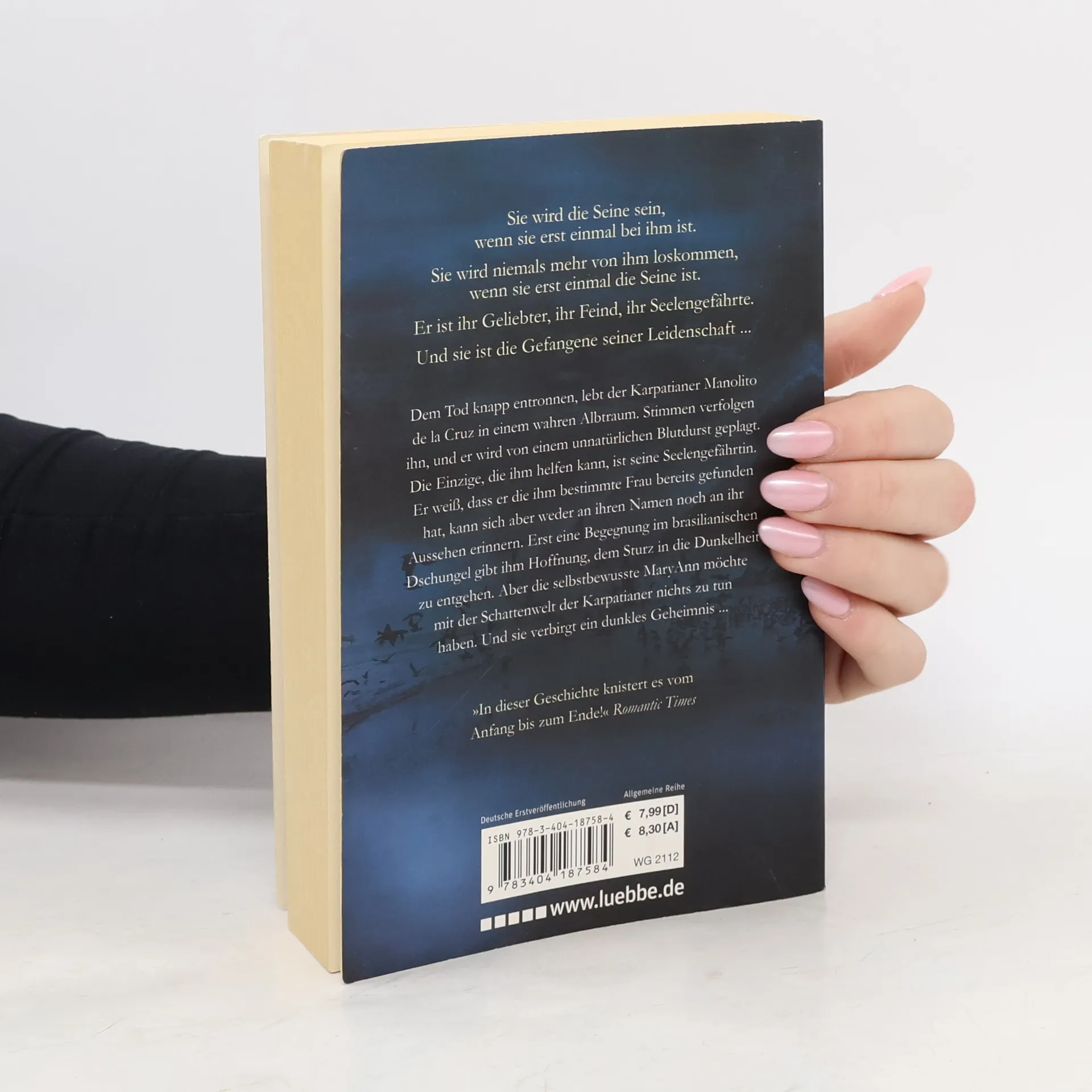 Dem Tod knapp entronnen, lebt der Karpatianer Manolito de la Cruz in einem wahren Albtraum. Stimmen verfolgen ihn, und er wird von einem unnatürlichen Blutdurst geplagt. Die Einzige, die ihm helfen kann, ist seine Seelengefährtin. Er weiß, dass er die ihm bestimmte Frau bereits gefunden hat, kann sich aber weder an ihren Namen noch an ihr Aussehen erinnern. Erst eine Begegnung im brasilianischen Dschungel gibt ihm Hoffnung, dem Sturz in die Dunkelheit zu entgehen. Aber die selbstbewusste MaryAnn möchte mit der Schattenwelt der Karpatianer nichts zu tun haben. Und sie verbirgt ein dunkles Geheimnis ...