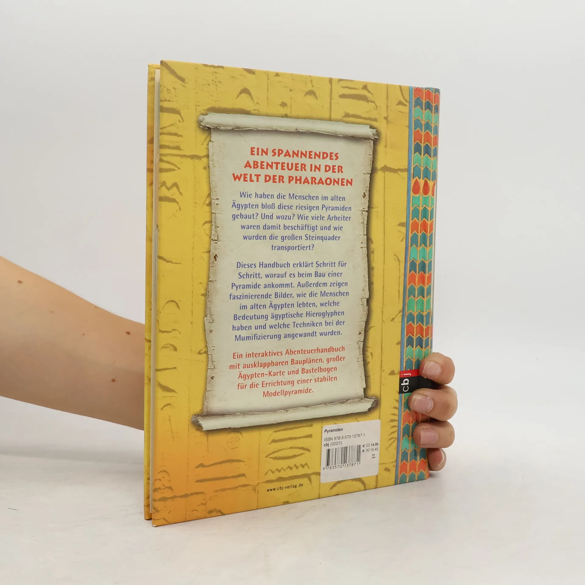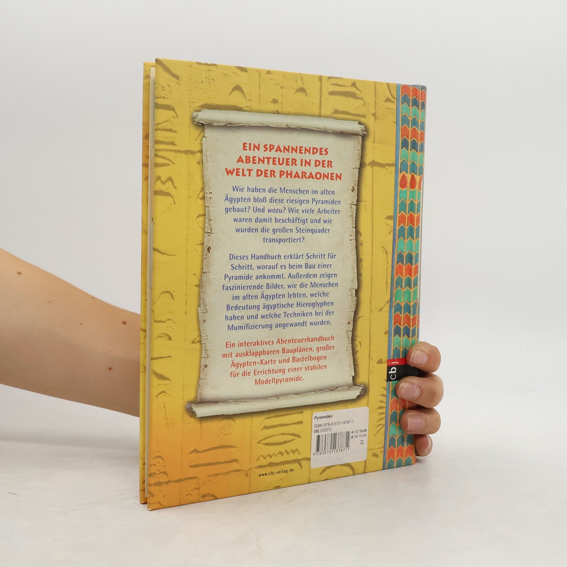 Pyramiden - wen begeistern sie nicht, diese riesigen Bauwerke? Und wie haben es die Menschen im alten Ägypten geschafft, sie zu errichten? In diesem interaktiven Abenteuerhandbuch wird Schritt für Schritt erklärt, worauf es beim Bau einer Pyramide ankam, wie viele Arbeiter, welches Werkzeug und Material man dazu brauchte. Aber nicht nur das. Sachkundige und lebendige Bilder veranschaulichen, wie die Menschen im alten Ägypten lebten, was ägyptische Hieroglyphen bedeuten und natürlich auch, wie eine Mumie entstand. Ein spannendes Abenteuer, das in eine geheimnisvolle Welt entführt - mit ausführlicher Anleitung plus Bastelbogen zur Errichtung einer großen Pyramide für den Pharao.