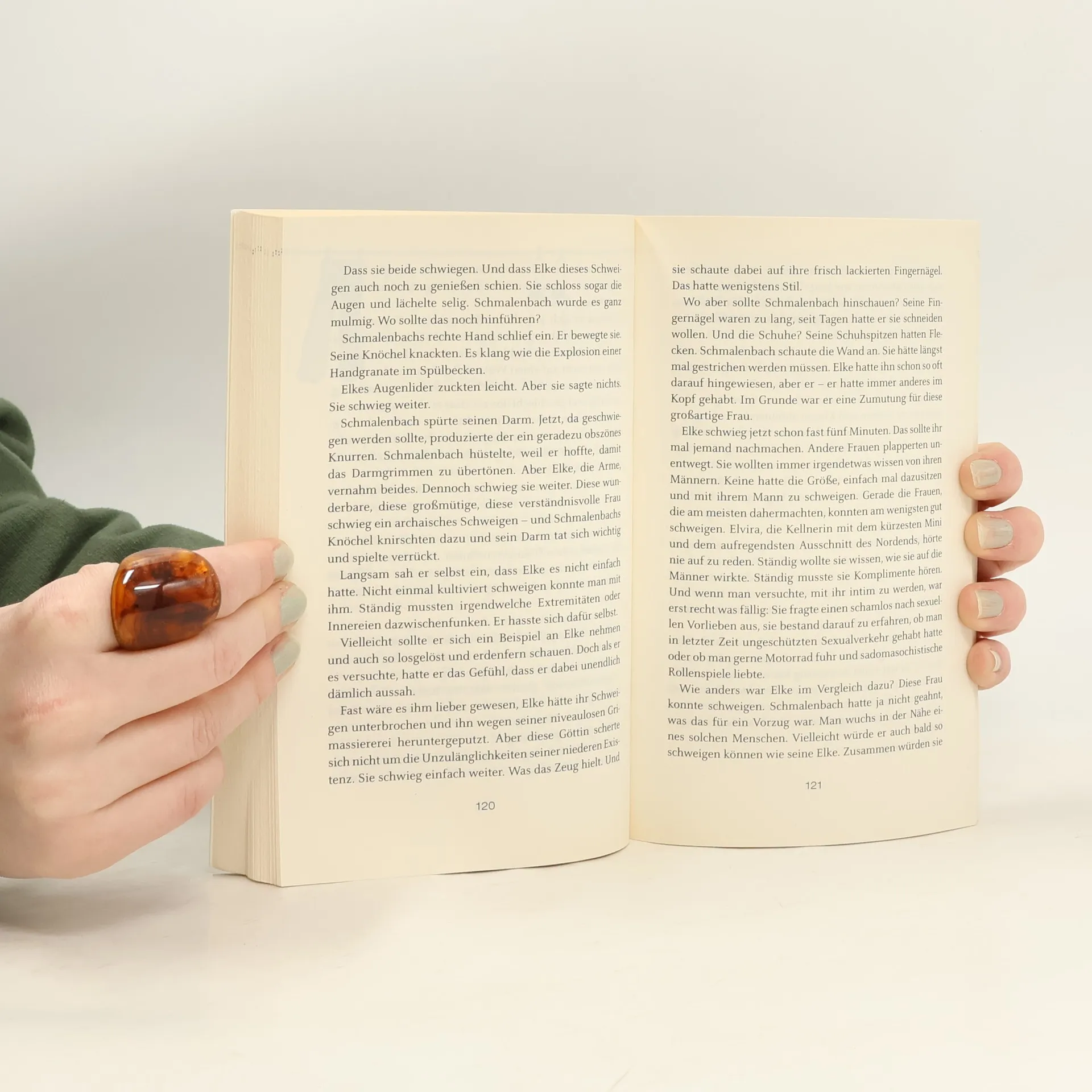 Elke will manchmal einfach nur reden: 'Warum liebst du mich?', fragt sie dann und schaut Schmalenbach aus großen Augen an. Er schlägt sich tapfer, solange es in ihren Gesprächen nicht um wirklich heikle Themen wie die Spirale geht. Schmalenbach gibt schließlich immer sein Bestes. Räkelt sie sich frühmorgens im Bett - Elke schläft nackt - und flüstert ihm 'Mach schnell!' ins Ohr, tut er, wie ihm befohlen. Und was macht sie? Sie heult. Schmalenbach wird seine Frau niemals verstehen. Doch was immer er anstellt: Elke versteht das.