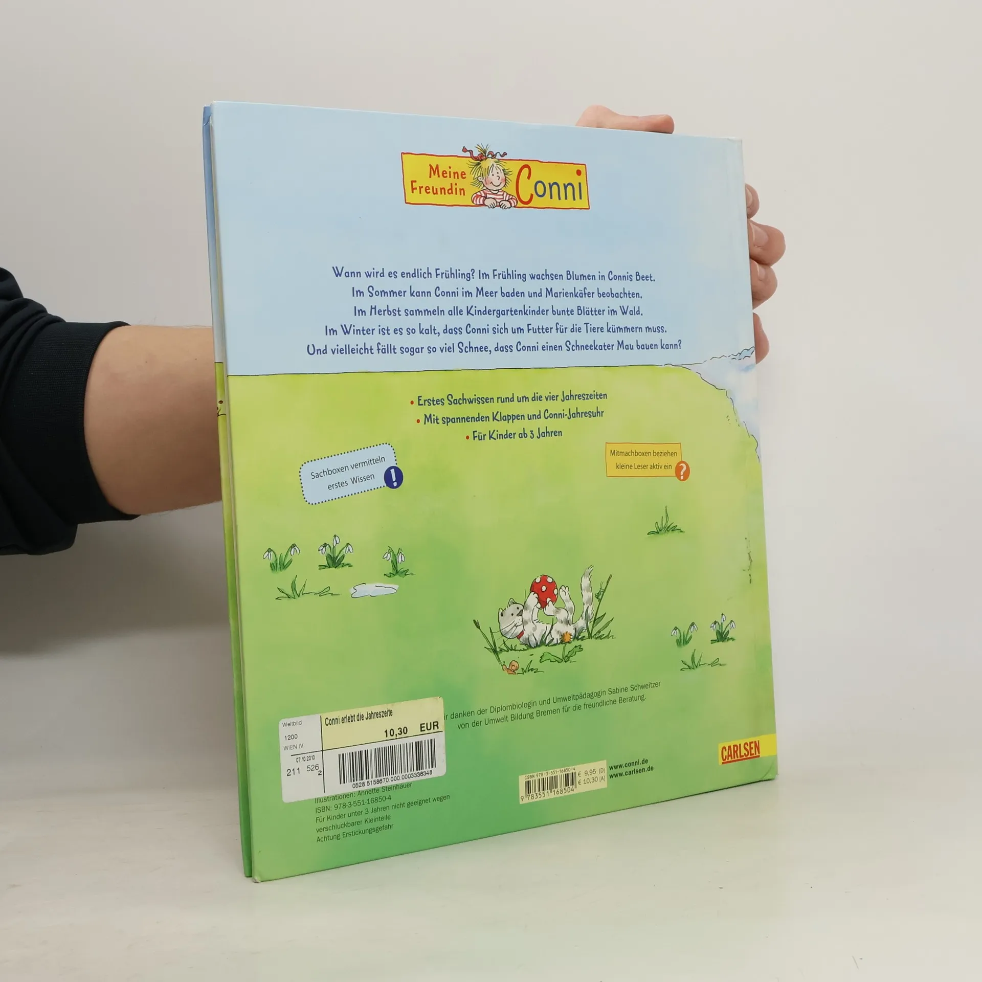 Wann wird es endlich Frühling? Im Frühling wachsen Blumen in Connis Beet. Im Sommer kann Conni im Meer baden und Marienkäfer beobachten. Im Herbst sammeln alle Kindergartenkinder bunte Blätter im Wald. Im Winter ist es so kalt, dass Conni sich um Futter für die Tiere kümmern muss. Und vielleicht fällt sogar so viel Schnee, dass Conni einen Schneekater Mau bauen kann? • Erstes Sachwissen rund um die vier Jahreszeiten • Mit spannenden Klappen CE Warnung! Nicht geeignet für Kinder unter 3 Jahren; Verschluckbare Kleinteile, Erstickungsgefahr