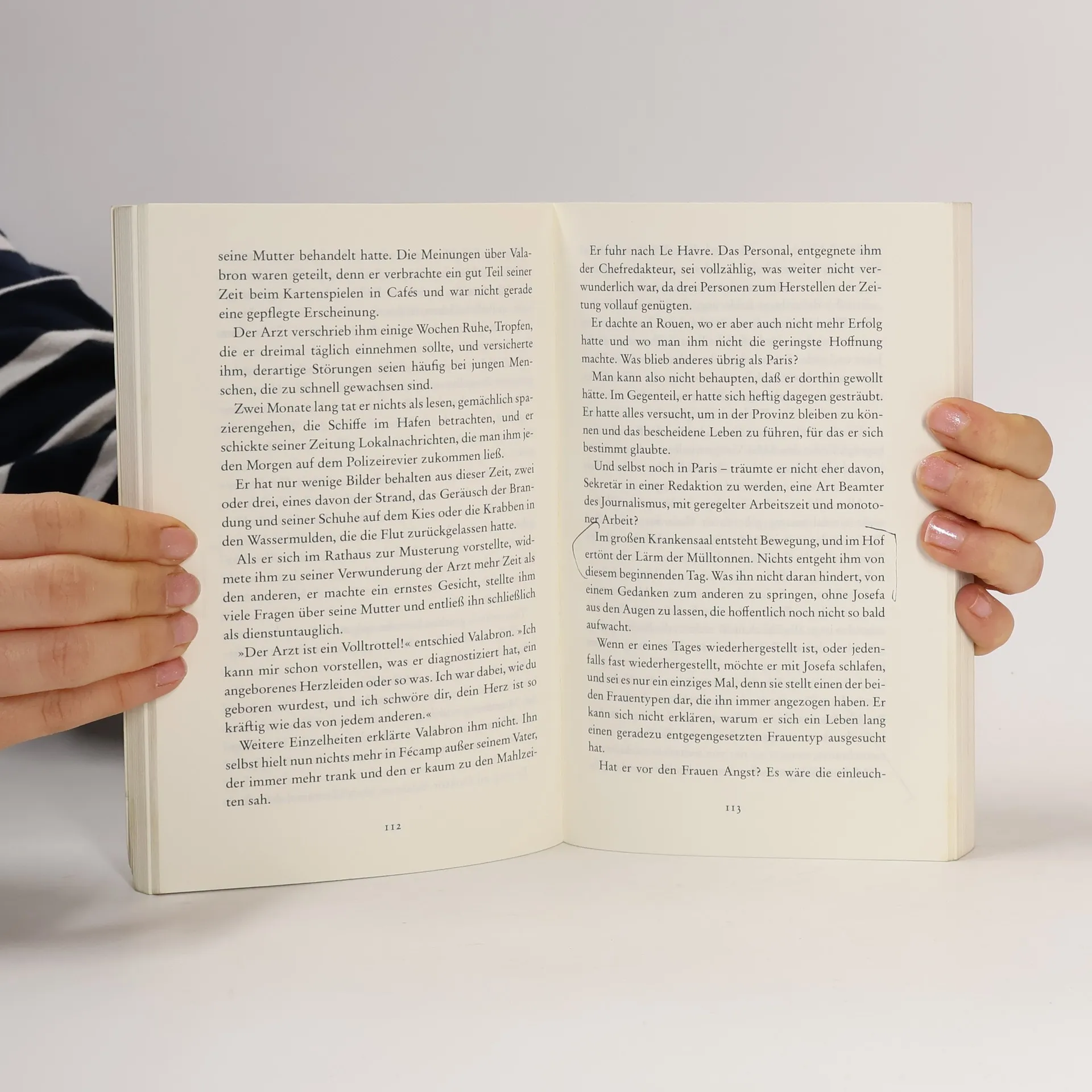 Belgischer Autor (1903-1989). - Mitten aus einer Tischrunde im Pariser 'Grand Véfour' fällt ein Mann ins Koma und erwacht wieder in der Klinik von Bicêtre. Seine Umgebung hält ihn für besinnungslos. Er selber weiß es besser. Hört die Gespräche am Bett, erinnert sich seines Lebens - der Erfolge als mächtiger Verleger, der Mißerfolge und Untergänge als Mensch