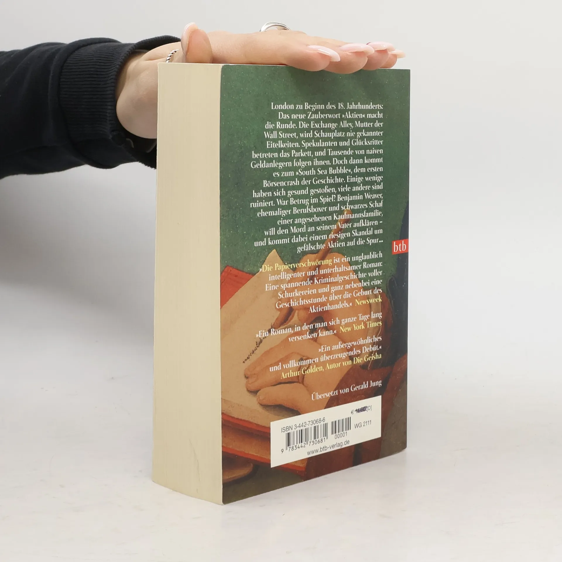 London, zu Beginn des 18. Jahrhunderts: Die Exchange Alley, Mutter der Wall Street, wird Schauplatz nie gekannter Eitelkeiten. Spekulanten und Glücksritter betreten das Parkett, und Tausende von naiven Geldanlegern folgen ihnen. Als „South Sea Bubble“ geht der erste Crash der angelsächsischen Welt in die Geschichtsbücher ein. Einige wenige haben sich reich spekuliert, und viele andere sind ruiniert. Doch war Betrug im Spiel? Ben Weaver, ehemaliger Berufsboxer und schwarzes Schaf einer angesehenen Kaufmannsfamilie, will den Mord an seinem Vater aufklären - und kommt dabei einem riesigen Skandal um gefälschte Aktien auf die Spur.