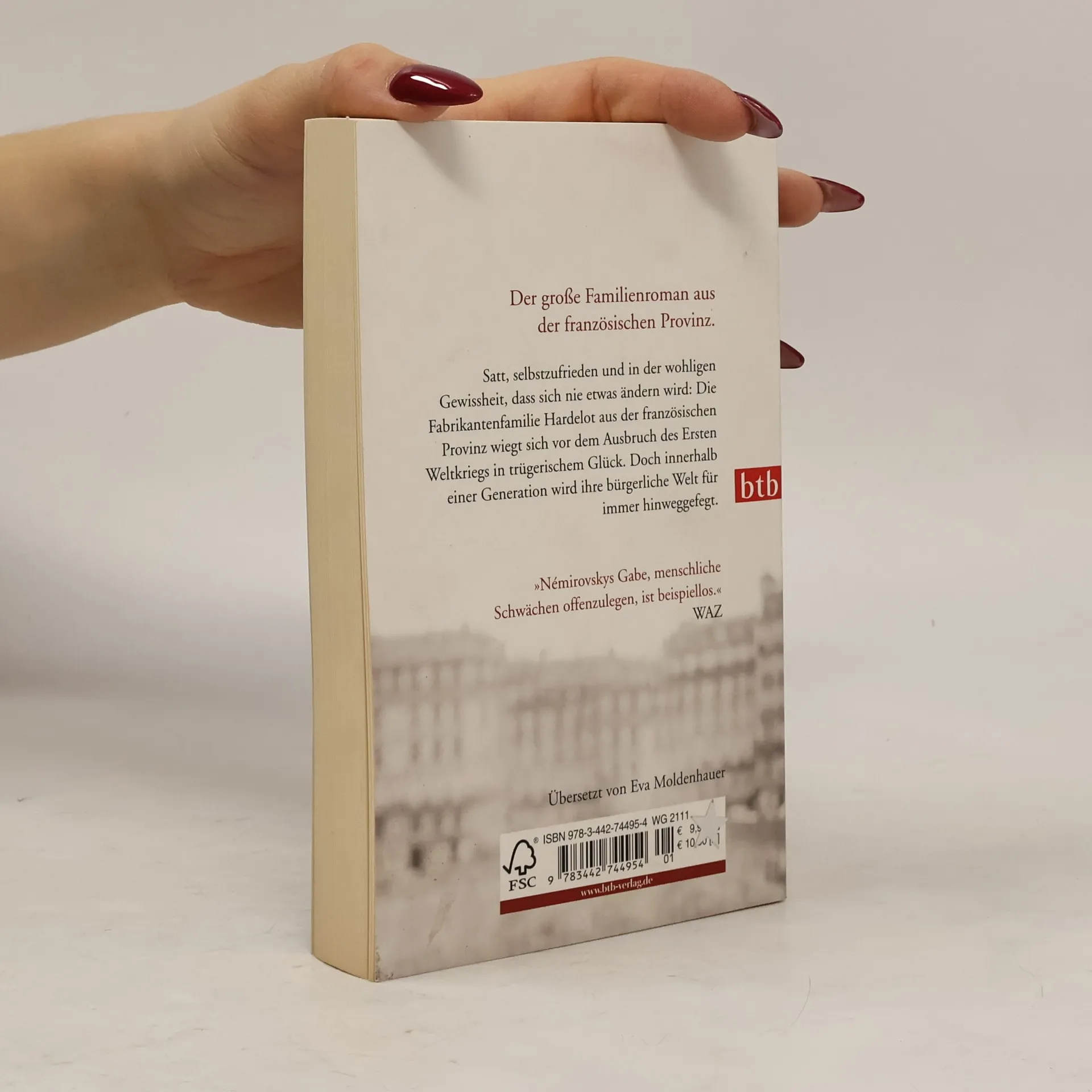 Über den Niedergang einer Familie – das neue Meisterstück der Autorin von »Suite française« Satt, selbstzufrieden und in der wohligen Gewissheit, dass sich nie etwas ändern wird: Die Fabrikantenfamilie Hardelot aus der französischen Provinz wiegt sich vor dem Ausbruch des Ersten Weltkriegs in trügerischem Glück. Doch innerhalb einer Generation wird ihre bürgerliche Welt für immer hinweggefegt. Im Frühjahr 1940 beginnt Irène Némirovsky die Arbeit an einem Buch, das ganz in der Tradition des großen europäischen Familienromans steht. Über Jahre hat sie die träge Selbstzufriedenheit der bürgerlichen Kreise, in denen sie verkehrte, beobachtet. Sie hat erlebt, wie diese Familien sich in Sicherheit wiegen und sich weigern, die Zeichen der Zeit zu erkennen. Nun will Némirovsky ihnen den Spiegel vorhalten. Der Roman, der unmittelbar vor »Suite française« entstand, wurde erst posthum 1947 veröffentlicht und ist der illusionslose Abgesang auf ein Bürgertum, das feige vor der Wirklichkeit die Augen verschließt. Ein großer Familienroman und zugleich ein Sittengemälde des französischen Bürgertums und seines Verfalls.