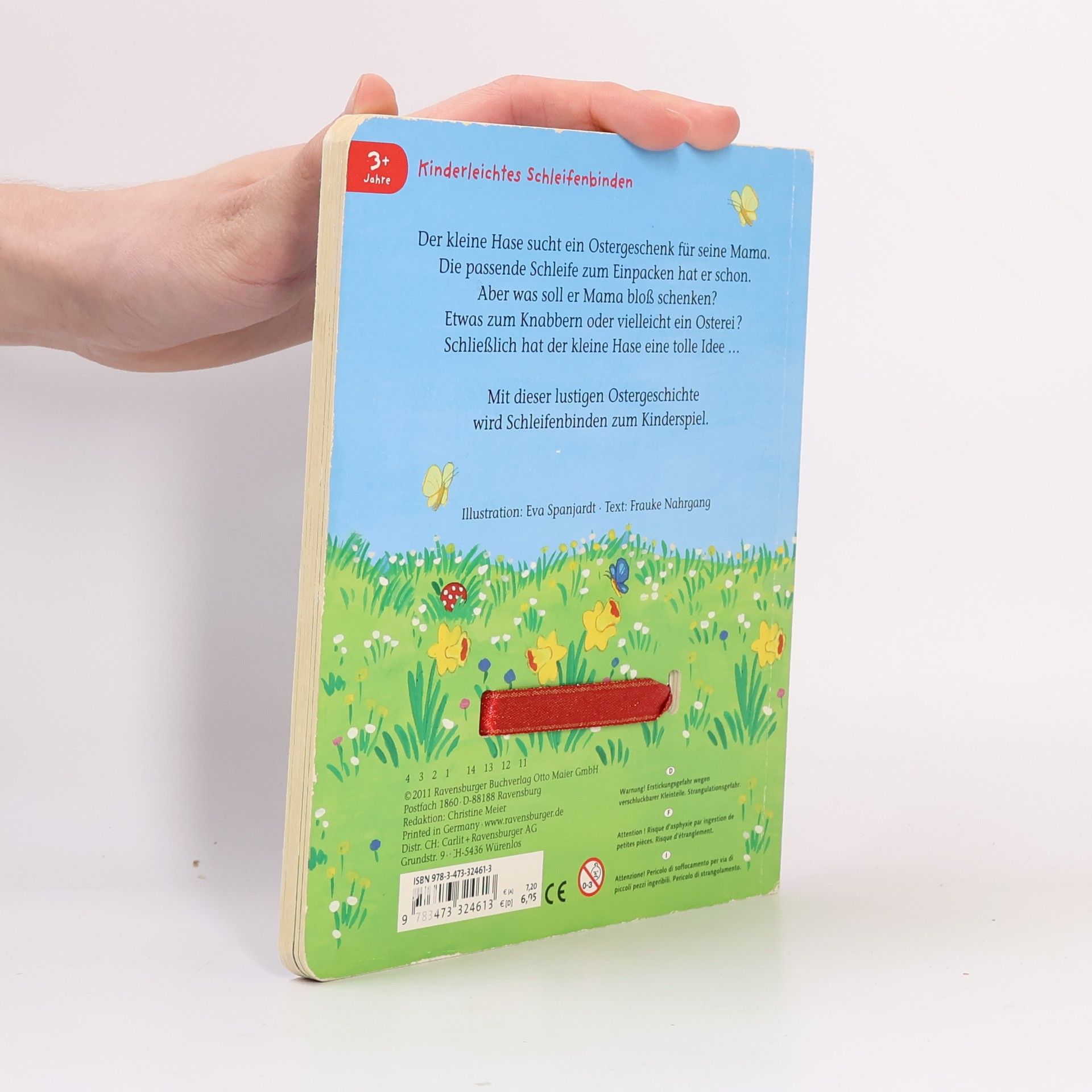 Der kleine Hase sucht ein Ostergeschenk für seine Mama. Eine Schleife dafür hat er schon. Und mit dieser können auf jeder Seite die Geschenke ein- und ausgepackt werden. So wird Schleifen binden kinderleicht.