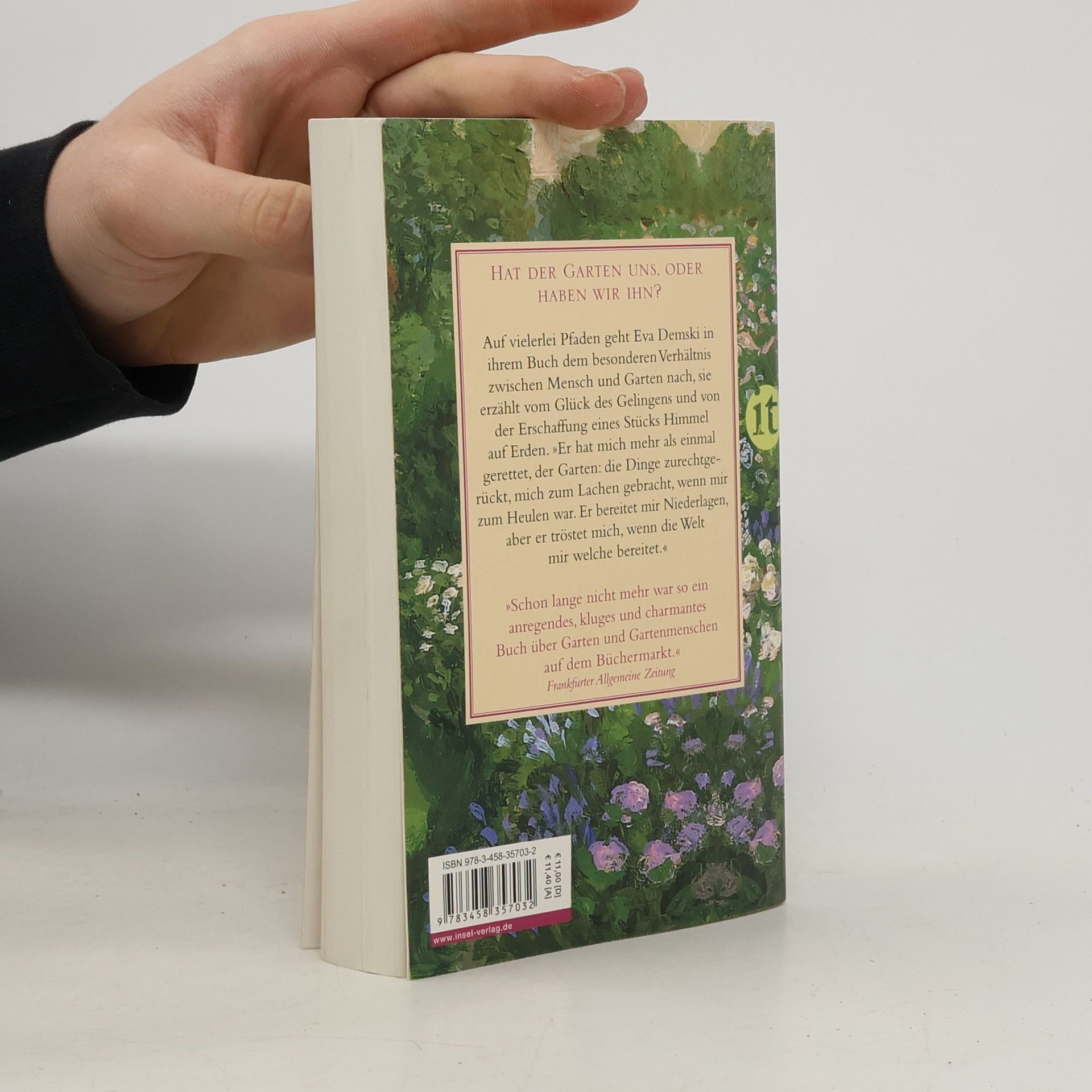 Eva Demski begibt sich auf Spurensuche und liefert ein anregendes, kluges und charmantes Buch über des Menschen liebsten Ort. »Er hat mich mehr als einmal gerettet, der Garten: die Dinge zurechtgerückt, mich zum Lachen gebracht, wenn mir zum Heulen war. Er bereitet mir Niederlagen, aber er tröstet mich, wenn die Welt mir welche bereitet.« »Als Sommerlektüre braucht dieses Buch über Freud und Leid des Gärtners keine besondere Fürsprache mehr. Leser, die die Geschichten, die neben der Kultivierung von Pflanzen auch von der Hege und Pflege des Lebens handeln, noch nicht gekauft, weiterempfohlen oder verschenkt haben, dürfen sich freuen, weil man sie auf den Erfolgstitel der Frankfurter Schriftstellerin noch hinweisen kann.« Florian Balke, Frankfurter Allgemeine Sonntagszeitung