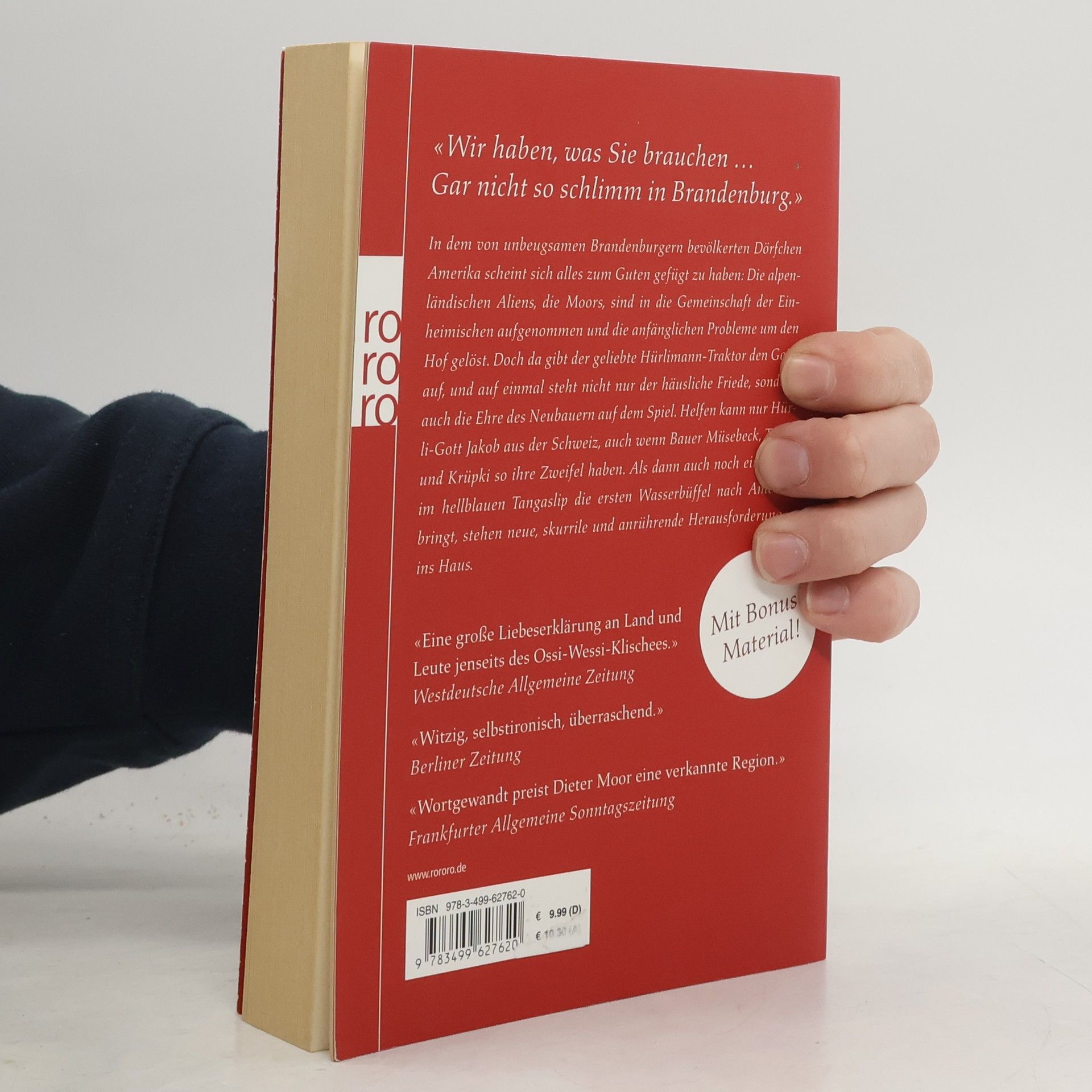 «Wir haben, was Sie brauchen … Gar nicht so schlimm in Brandenburg.»In dem von unbeugsamen Brandenburgern bevölkerten Dörfchen Amerika scheint sich alles zum Guten gefügt zu haben: Die alpenländischen Aliens, die Moors, sind in die Gemeinschaft der Einheimischen aufgenommen und die anfänglichen Probleme um den Hof gelöst. Doch da gibt der geliebte Hürlimann-Traktor den Geist auf, und auf einmal steht nicht nur der häusliche Friede, sondern auch die Ehre des Neubauern auf dem Spiel. Helfen kann nur Hürli-Gott Jakob aus der Schweiz, auch wenn Bauer Müsebeck, Teddy und Krüpki so ihre Zweifel haben. Als dann auch noch ein Bayer im hellblauen Tangaslip die ersten Wasserbüffel nach Amerika bringt, stehen neue, skurrile und anrührende Herausforderungen ins Haus.