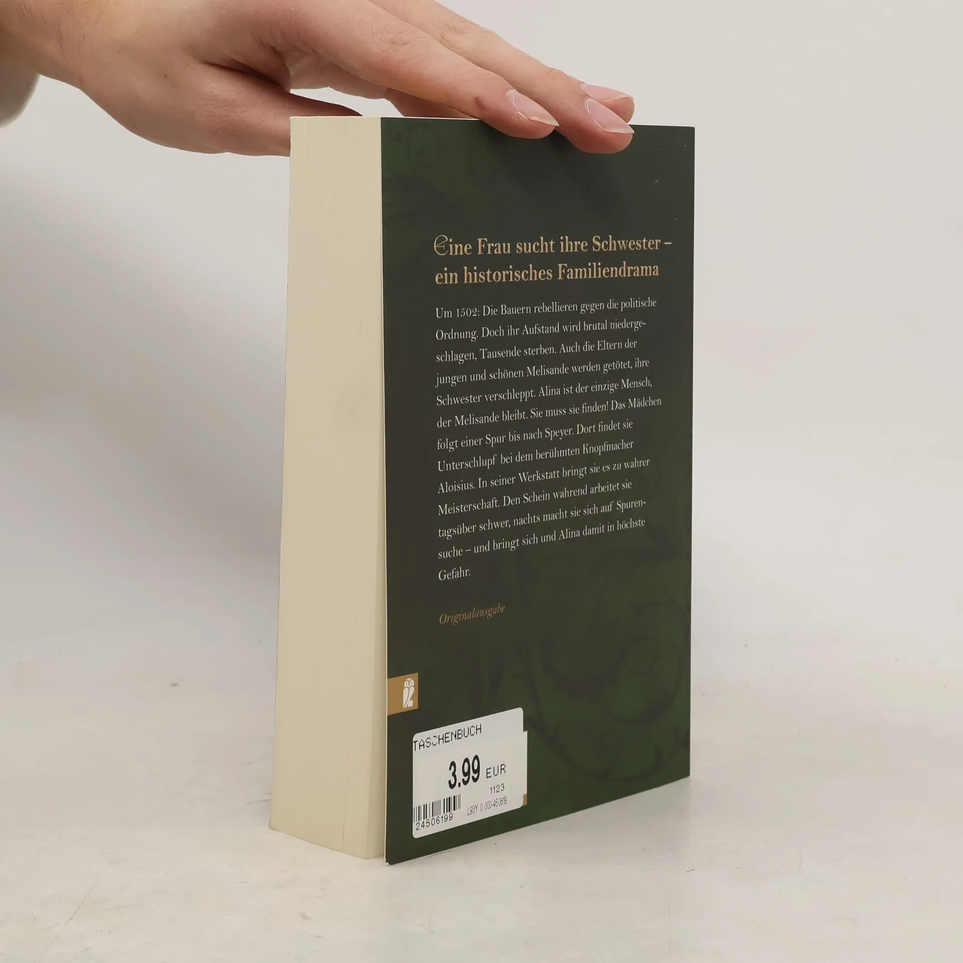 Anno 1502: Die Bundschuhbewegung versetzt den Südwesten des Reiches in Angst und Schrecken. In den politischen Wirren werden die Eltern der jungen Melisande getötet, ihre Schwester verschleppt. Die junge Frau folgt der Spur nach Speyer und findet Unterschlupf beim Knopfmacher der Bischofsstadt. Sie wird sein Geselle – und verliert ihr Ziel dennoch nicht aus den Augen: Sie muss Alina finden! Melisandes einziger Helfer ist Bernhard, der Lehrling des Knopfmachers. Und er ist bald mehr für sie als bloß ein Vertrauter.