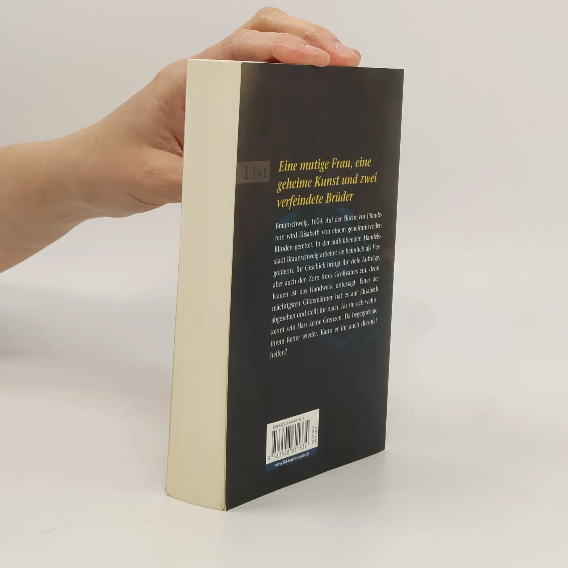 Braunschweig, 1604: Auf der Flucht vor Plünderern wird Elisabeth von einem geheimnisvollen Blinden gerettet. Er weckt tiefe Gefühle in ihr, obwohl sie einem anderen versprochen ist. In Braunschweig arbeitet sie heimlich als Vergolderin. Ihr Geschick bringt ihr viele Aufträge, aber auch den Zorn der Zunft ein, denn Frauen ist das Handwerk untersagt. Als der Gildemeister davon erfährt, droht Elisabeth die Hinrichtung. Da begegnet sie ihrem Retter wieder. Kann er ihr erneut helfen?