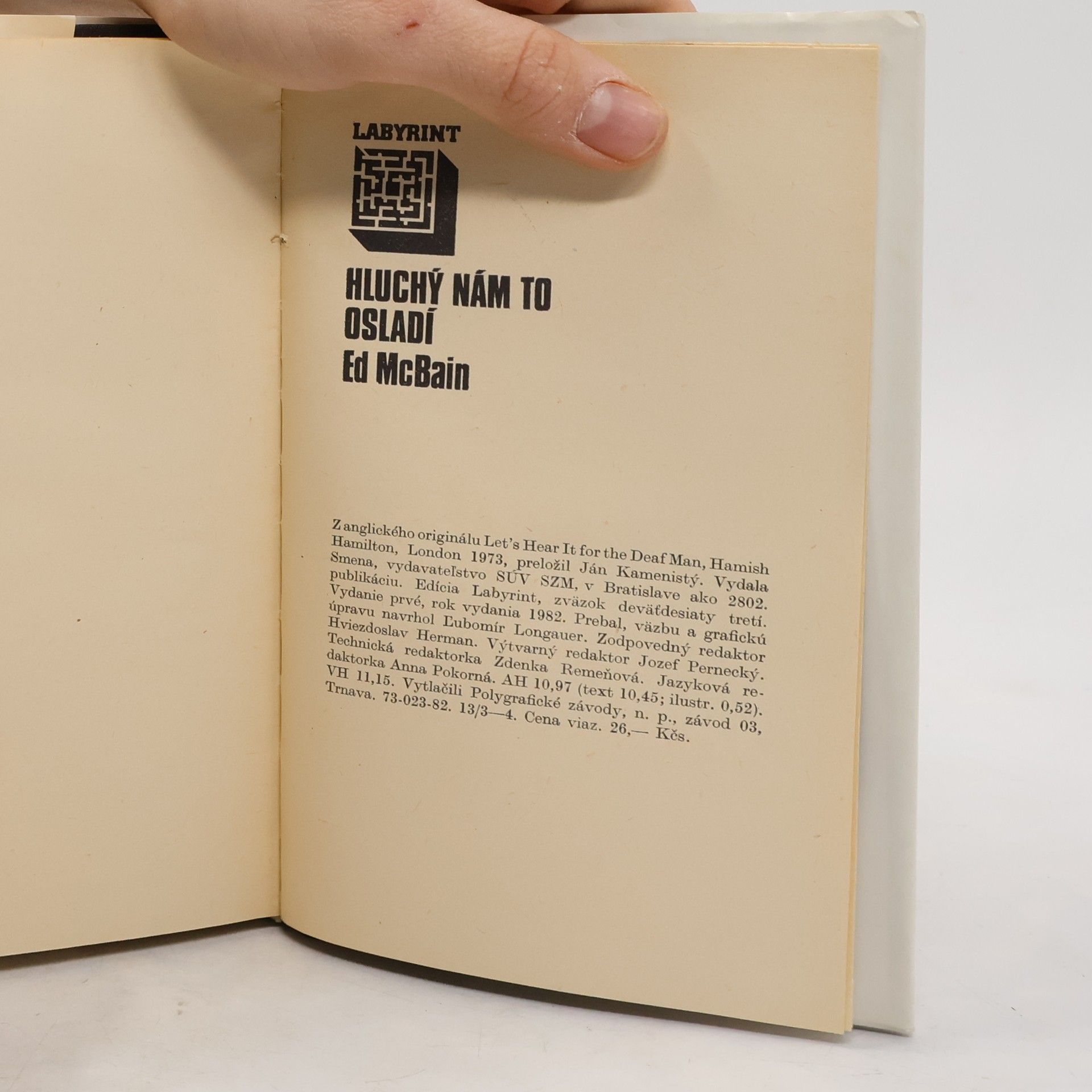V jedno slnečné aprílové popoludnie zacengá na osemdesiatom siedmom okrsku telefón a ohlási sa Hluchý, zločinec, pre ktorého malo celé detektívne oddelenie už neraz hlavu v smútku. Oznámi, že v posledný aprílový deň ukradne pol milióna dolárov z istej banky, a aby polícii ešte väčšmi uľahčil úlohu, posiela im postupne celý obrázkový rébus, v ktorom sa tají názov a adresa banky. Steve Carella a jeho kolegovia nevedia, čo si majú o tejto čudnej zdielnosti myslieť, no v kútiku duše sa im tají podozrenie: Hluchý nám to osladí. A majú pravdu. Navyše sa ukáže, že jeho plán je mimoriadne rafinovaný a nie nepodstatnú úlohu v ňom zohráva aj detektív Carella. Ed McBain (vlastným menom Evan Hunter) je našim čitateľom dobre známy ako autor populárnej série policajných románov o osemdesiatom siedmom okrsku