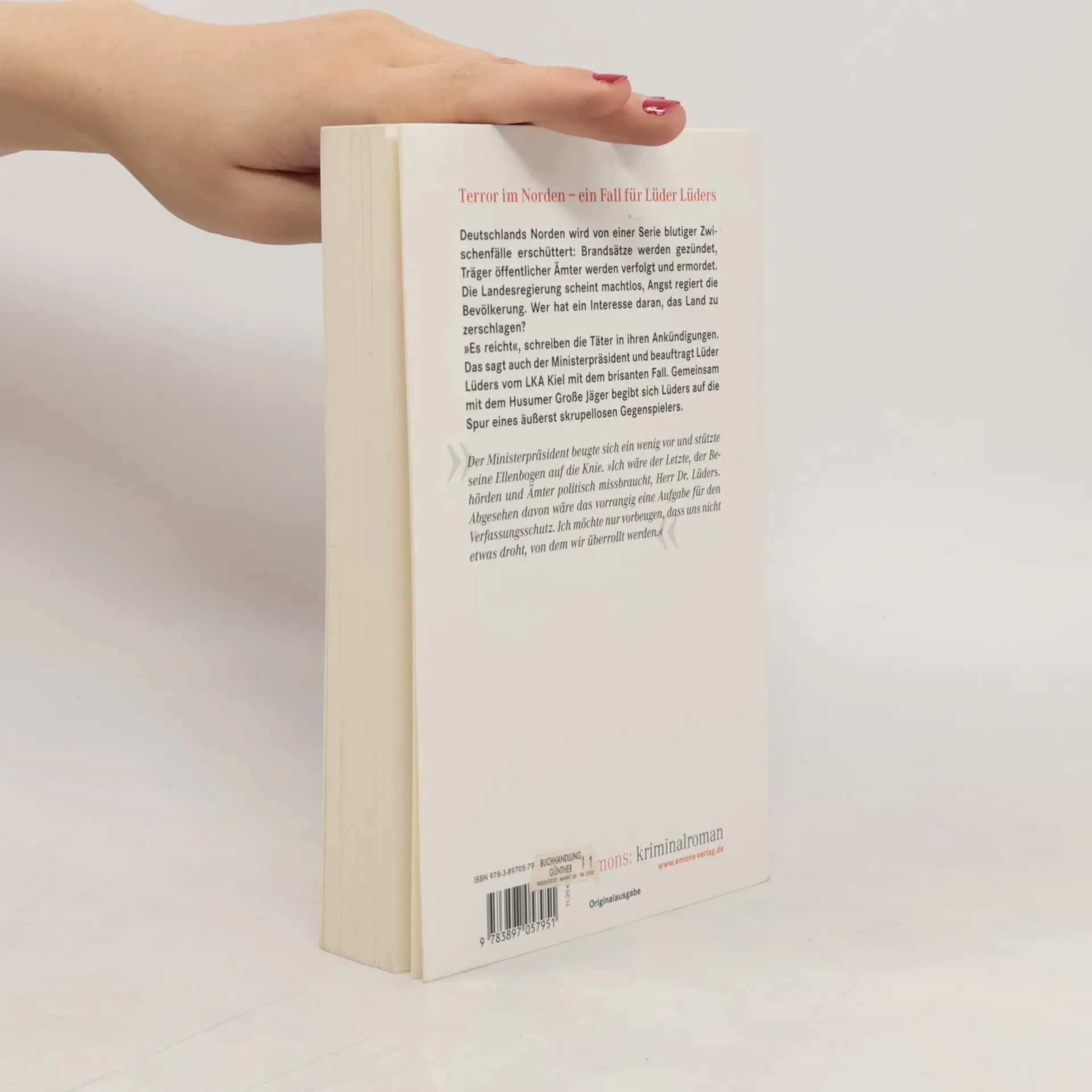Deutschlands Norden wird von einer Serie blutiger Zwischenfälle erschüttert: Brandsätze werden gezündet, Träger öffentlicher Ämter werden verfolgt und ermordet. Die Landesregierung scheint machtlos, Angst regiert die Bevölkerung. Wer hat ein Interesse daran, das Land zu zerschlagen? 'Es reicht', schreiben die Täter in ihren Ankündigungen. Das sagt auch der Ministerpräsident und beauftragt Lüder Lüders vom LKA Kiel mit dem brisanten Fall. Gemeinsam mit dem Husumer Große Jäger begibt sich Lüders auf die Spur eines äußerst skrupellosen Gegenspielers.