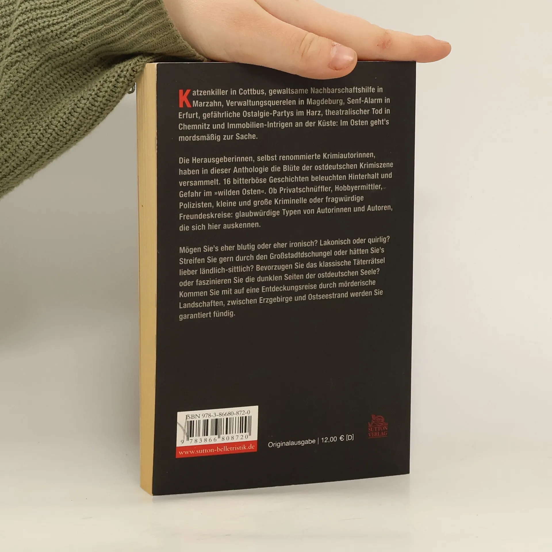 Katzenkiller in Cottbus, gewaltsame Nachbarschaftshilfe in Marzahn, Verwaltungsquerelen in Magdeburg, Senf-Alarm in Erfurt, gefährliche Ostalgie-Partys im Harz, theatralischer Tod in Chemnitz und Immobilien-Intrigen an der Küste: Im Osten geht’s mordsmäßig zur Sache. 16 bitterböse Geschichten beleuchten Hinterhalt und Gefahr zwischen Erzgebirge und Ostseestrand.