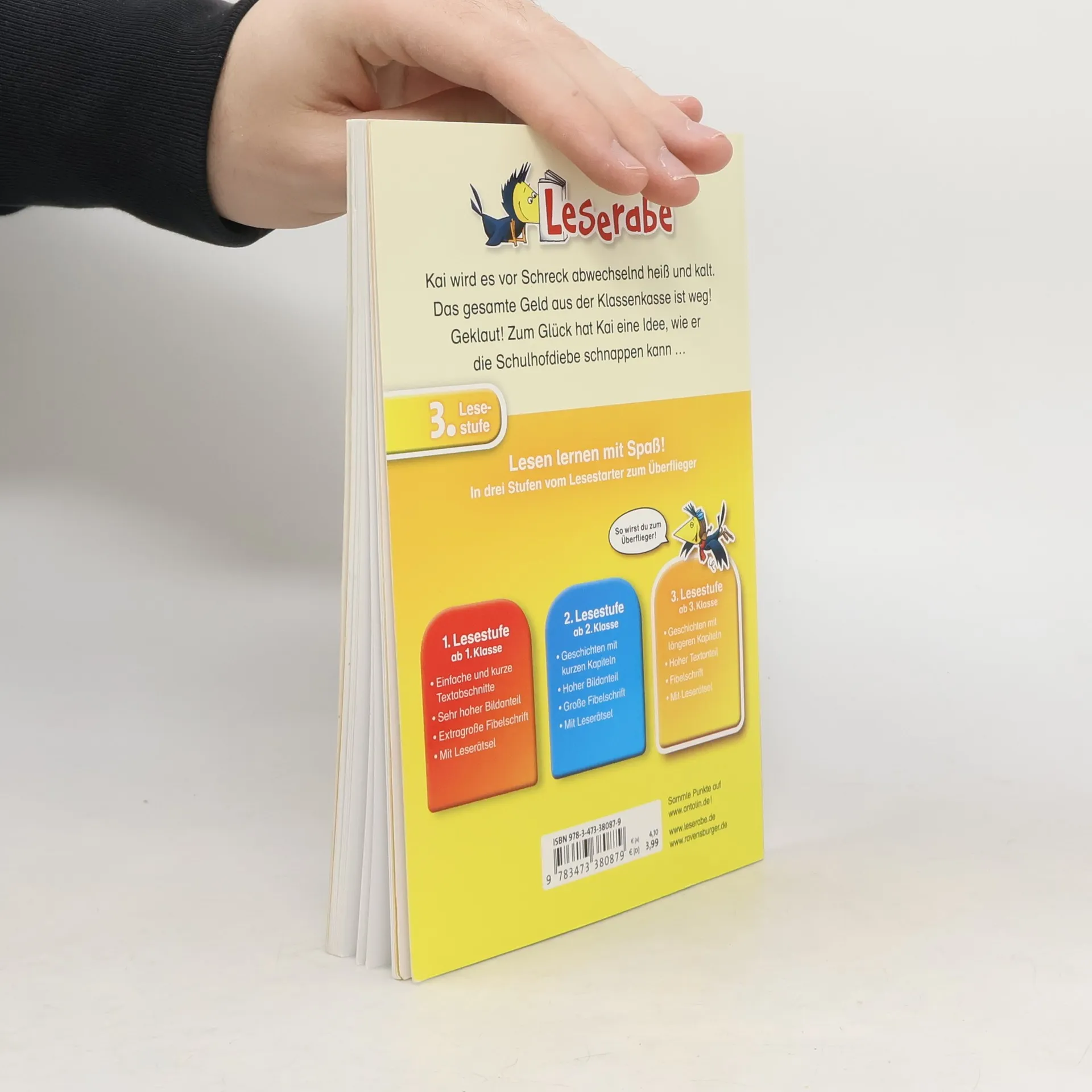 Kai hat ein Hobby: Geld. Seine Freunde haben ihm deswegen sogar den Spitznamen „Die Bank“ gegeben. Kaum zu glauben, dass ausgerechnet Kai die Klassenkasse gestohlen wird. Das ganze Geld für den Ausflug in den Vergnügungspark! Zusammen mit seinem besten Freund nimmt Kai die Ermittlungen auf und schon bald haben die beiden eine heiße Spur. Lesen lernen wie im Flug! Die Kinderbücher der Reihe Leserabe – 3. Lesestufe wurden mit Pädagogen entwickelt und richten sich an Leseprofis ab der 3. Klasse. Durch spannende Geschichten mit längeren Kapiteln und erweitertem Wortschatz wird die Lesefähigkeit von Mädchen und Jungen ab 8 Jahren gefördert. Empfohlen von Stiftung Lesen, gelistet bei Antolin.