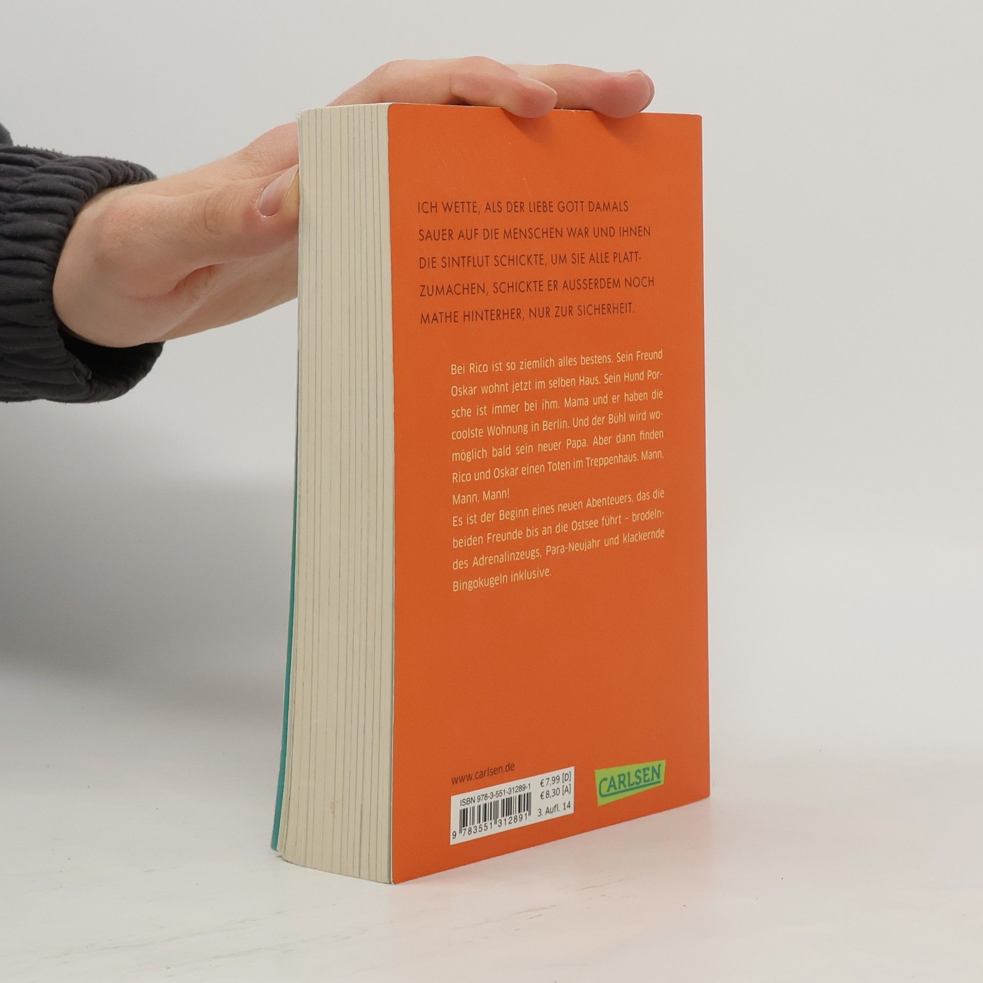Bei Rico ist so ziemlich alles bestens. Sein Freund Oskar wohnt jetzt im selben Haus. Sein Hund Porsche ist immer bei ihm. Mama und er haben die coolste Wohnung in Berlin. Und der Bühl wird womöglich bald sein neuer Papa. Aber dann finden Rico und Oskar einen Toten im Treppenhaus. Mann, Mann, Mann! Die beiden Freunde müssen sich mit brodelndem Adrenalinzeugs, Para-Neujahr und klackernden Bingokugeln herumschlagen, als dieses neue Abenteuer sie bis an die Ostsee führt. Alle Bücher über Rico und Oskar: Rico, Oskar und die Tieferschatten (Band 1)Rico, Oskar und das Herzgebreche (Band 2)Rico, Oskar und der Diebstahlstein (Band 3)Rico, Oskar und das Vomhimmelhoch (Band 4) Kindercomics:Rico & Oskar – Fische aus Silber Rico & Oskar – Die RegenhütteRico & Oskar – Die perfekte ArschbombeRico & Oskar – Die Sache mit den Öhrchen