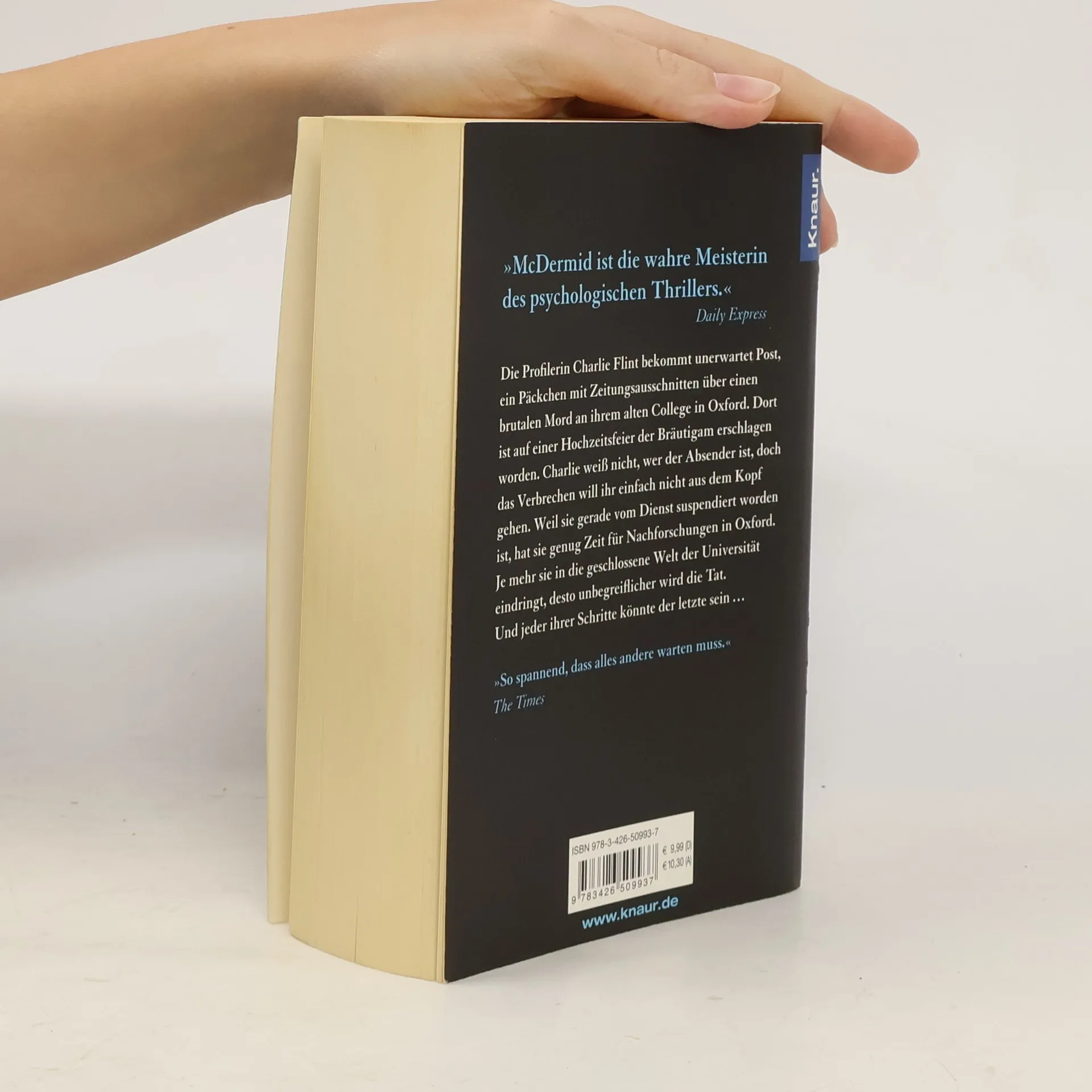 Die Profilerin Charlie Flint bekommt unerwartet Post, ein Päckchen mit Zeitungsausschnitten über einen brutalen Mord an ihrem alten College in Oxford. Dort ist auf einer Hochzeitsfeier der Bräutigam erschlagen worden. Während die Gäste sich den Champagner schmecken ließen, hat man seine blutüberströmte Leiche in den nahen Fluss geworfen. Charlie weiß nicht, wer der Absender ist, doch das Verbrechen will ihr einfach nicht aus dem Kopf gehen. Weil sie gerade vom Dienst suspendiert worden ist, hat sie genug Zeit für Nachforschungen in Oxford. Je mehr sie in die geschlossene Welt der Universität eindringt, desto unbegreiflicher wird die Tat. Und jeder ihrer Schritte könnte einer zu viel sein …