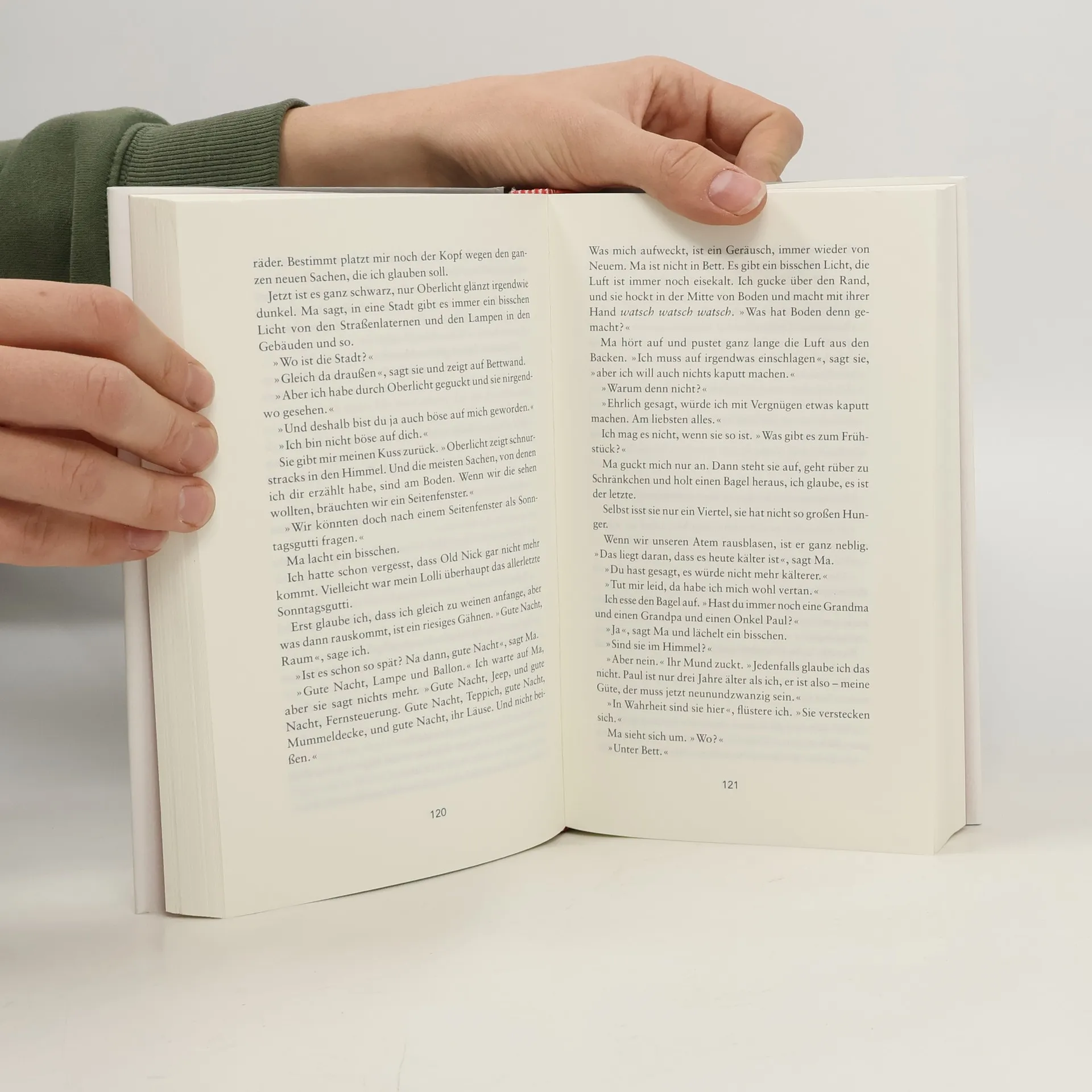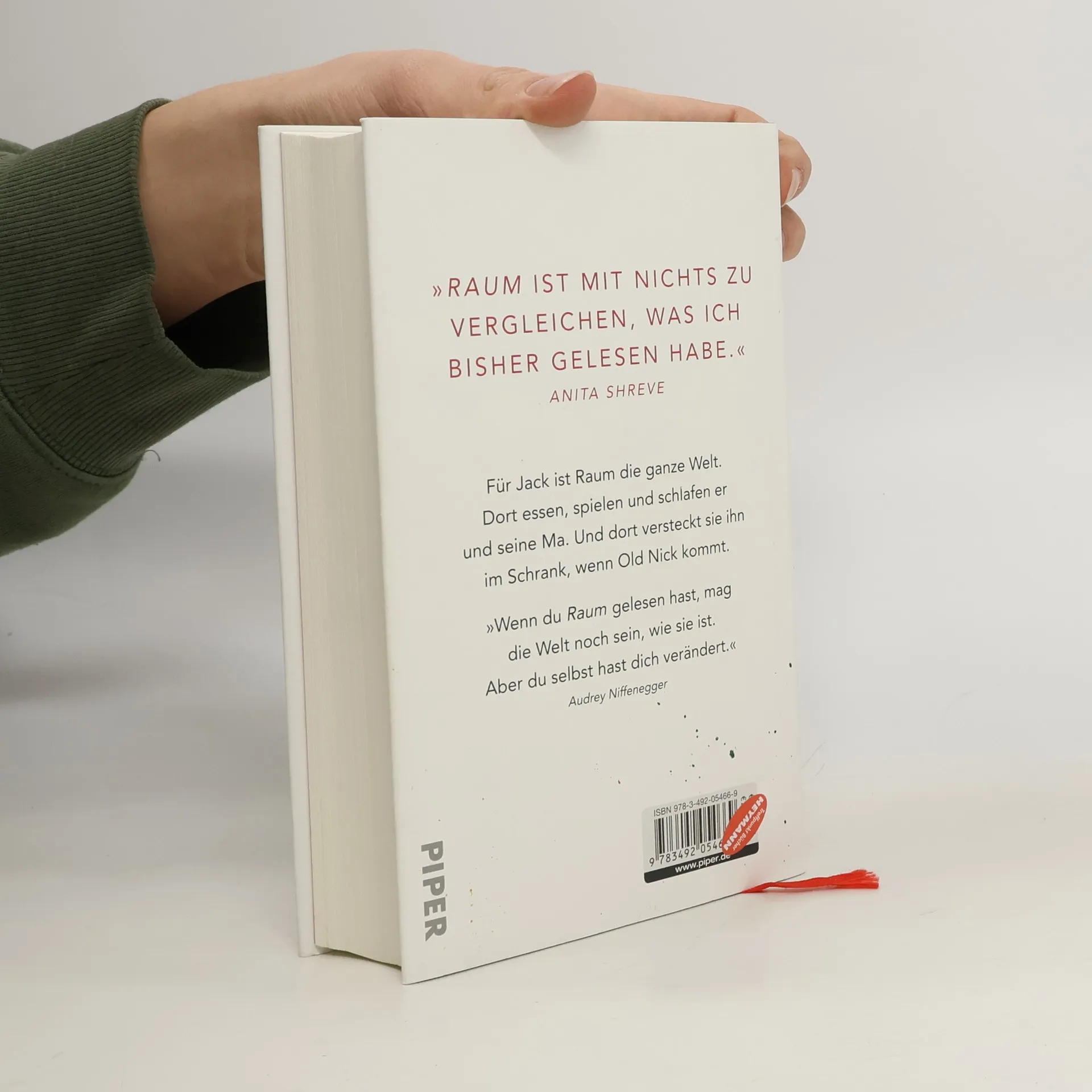 Auch seinen fünften Geburtstag feiert Jack in Raum. Raum hat eine immer verschlossene Tür, ein Oberlicht und ist 12 Quadratmeter groß. Dort lebt der Kleine mit seiner Mutter. Dort wurde er auch geboren. Jack liebt es fernzusehen, denn da sieht er seine 'Freunde', die Cartoonfiguren. Aber er weiß, dass die Dinge hinter der Mattscheibe nicht echt sind – echt sind nur Ma, er und die Dinge in Raum. Bis der Tag kommt, an dem Ma ihm erklärt, dass es doch eine Welt da draußen gibt und dass sie versuchen müssen, aus Raum zu fliehen … 'Nerven zerreißend und fesselnd. ›Raum‹ – angeregt von der wahren Geschichte über Elisabeth Fritzl, eingesperrt mit ihren Kindern von ihrem Vater – ist die Geschichte einer Mutter und ihres Sohnes, deren Liebe sie das Unglaubliche überleben lässt.' Psychologies