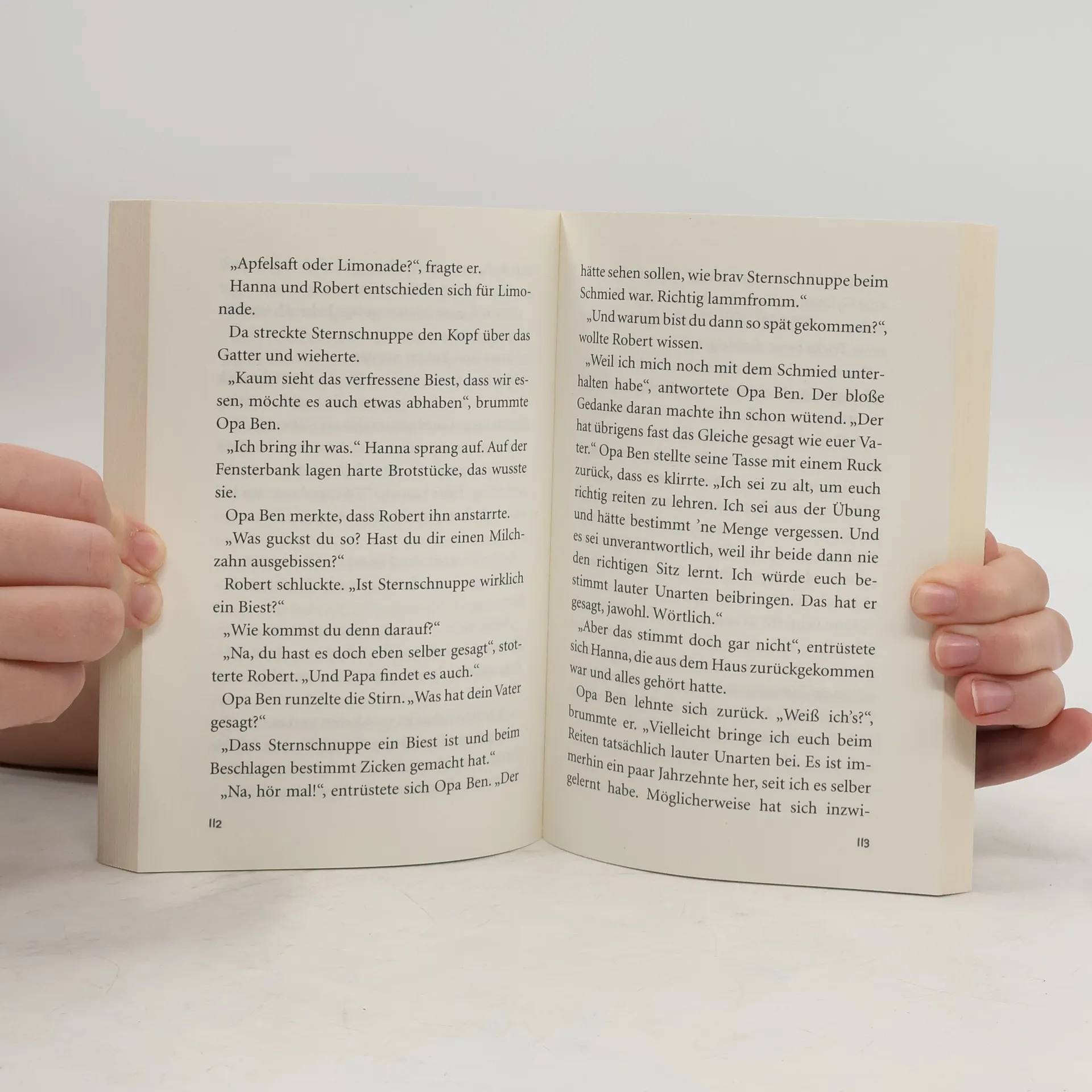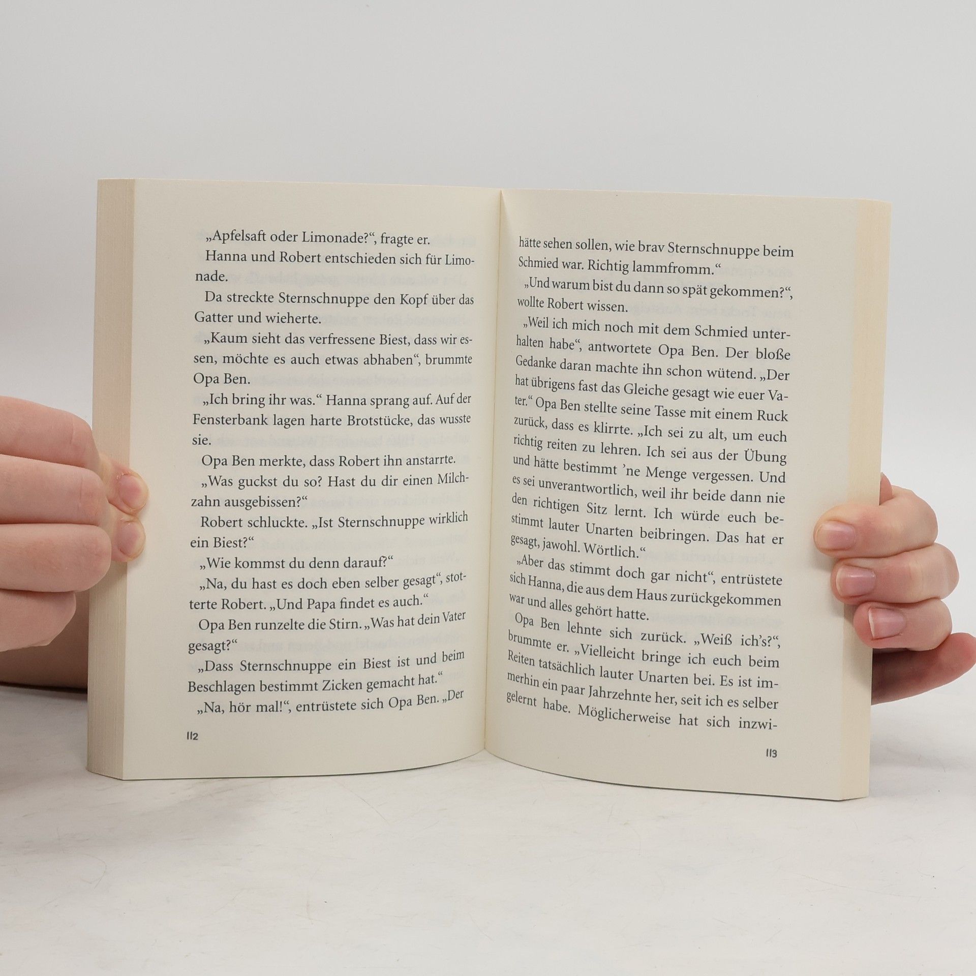 Das gibt's doch nicht - im Garten steht ein Pferd! Hanna ist begeistert. Aber Sternschnuppe ist aus dem Zirkus ausgebüxt und soll wieder dorthin zurück. Zum Glück hat Opa Ben die rettende Idee! Doch schon bald geht es turbulent weiter: Hanna und Robert besuchen ihren Opa und dürfen sogar Reitstunden nehmen - auf Sternschnuppe! Aber eines Morgens ist die Stute verschwunden. Die Geschwister machen sich auf die Suche. Dieser Doppelband enthält die Einzelbände „Sternschnuppe sucht ein Zuhause“ und „Sternschnuppe reißt aus“.