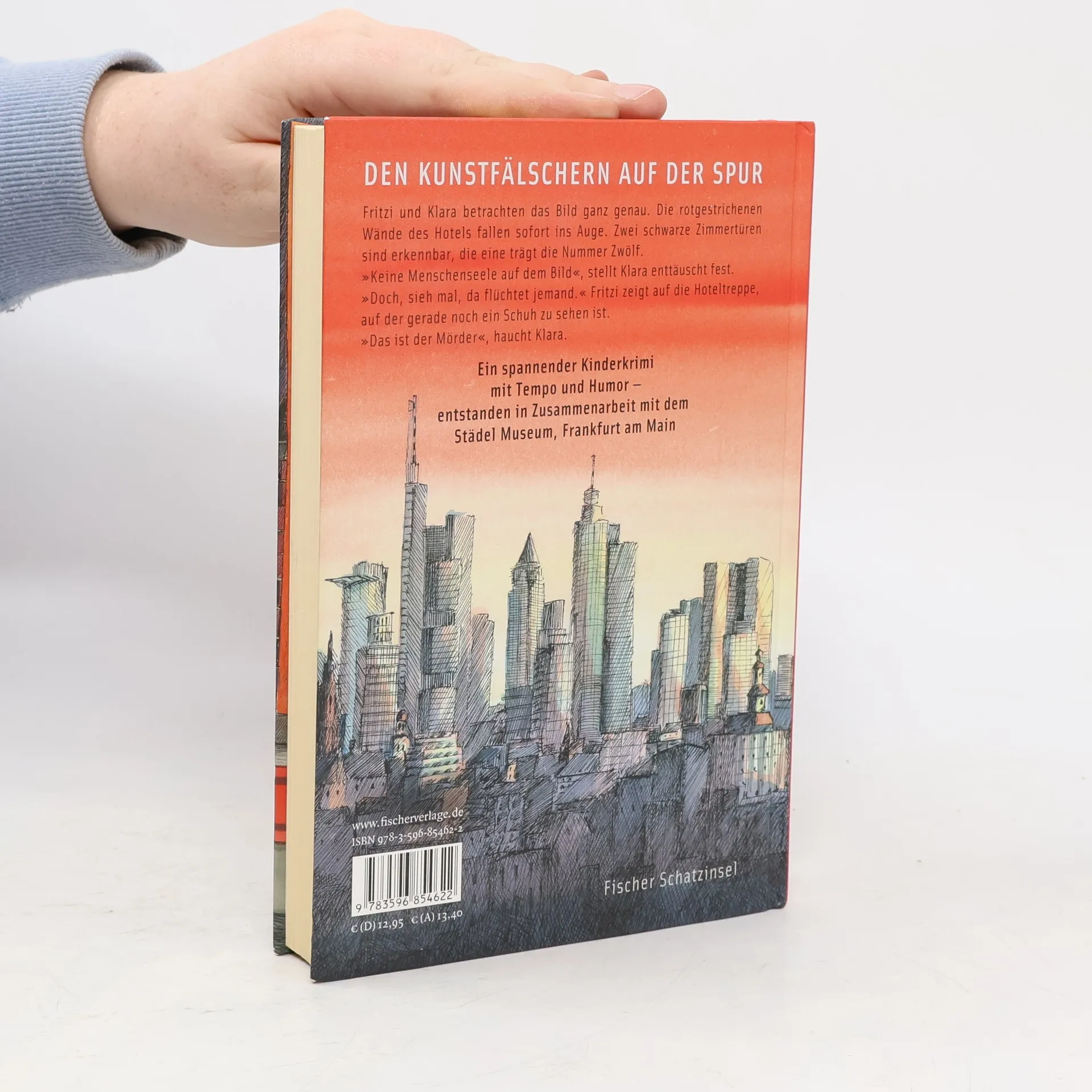 Den Kunstfälschern auf der Spur Fritzi und Klara betrachten das Bild ganz genau. Die rotgestrichenen Wände des Hotels fallen sofort ins Auge. Zwei schwarze Zimmertüren sind erkennbar, die eine trägt die Nummer Zwölf. »Keine Menschenseele auf dem Bild«, stellt Klara enttäuscht fest. »Doch, sieh mal, da flüchtet jemand.« Fritzi zeigt auf die Hoteltreppe, auf der gerade noch ein Schuh zu sehen ist. »Das ist der Täter«, haucht Klara. Ein spannender Kinderkrimi mit Tempo und Humor – entstanden in Zusammenarbeit mit dem Städel Museum, Frankfurt am Mai n