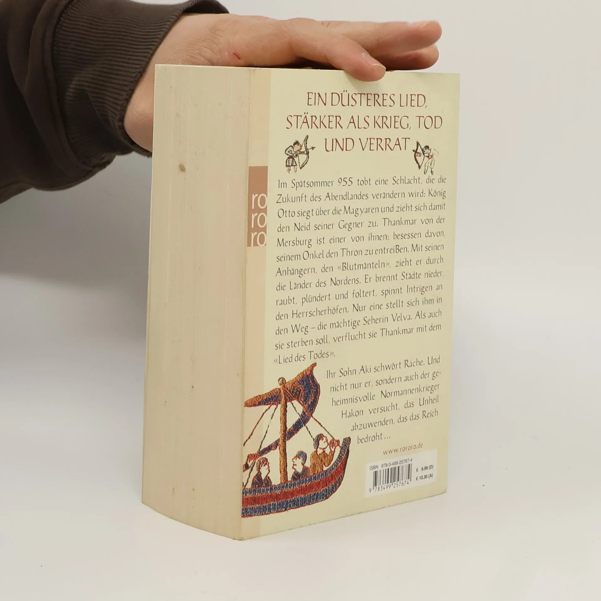 Ein düsteres Lied, stärker als Krieg, Tod und Verrat Im Spätsommer 955 tobt eine Schlacht, die die Zukunft des Abendlandes verändern wird: König Otto siegt über die Magyaren und zieht sich damit den Neid seiner Gegner zu. Thankmar von der Mersburg ist einer von ihnen: besessen davon, seinem Onkel den Thron zu entreißen. Mit seinen Anhängern, den «Blutmänteln», zieht er durch die Länder des Nordens. Er brennt Städte nieder, raubt, plündert und foltert, spinnt Intrigen an den Herrscherhöfen. Nur eine stellt sich ihm in den Weg – die mächtige Seherin Velva. Als auch sie sterben soll, verflucht sie Thankmar mit dem «Lied des Todes». Ihr Sohn Aki schwört Rache. Und nicht nur er, sondern auch der geheimnisvolle Normannenkrieger Hakon versucht, das Unheil abzuwenden, das das Reich bedroht ...