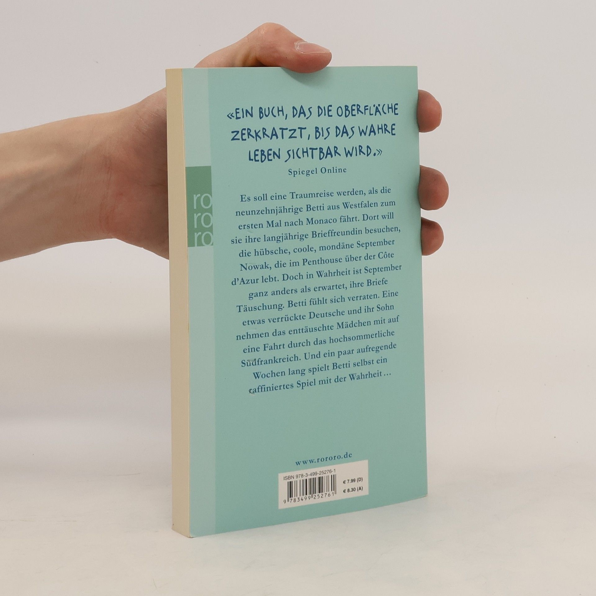 «Ein Buch, das die OberFläche zerkratzt, bis das wahre Leben sichtbar wird.» (Spiegel Online) Es soll eine Traumreise werden, als die neunzehnjährige Betti aus Westfalen zum ersten Mal nach Monaco fährt. Dort will sie ihre langjährige Brieffreundin besuchen, die hübsche, coole, mondäne September Nowak, die im Penthouse über der Côte d’Azur lebt. Doch in Wahrheit ist September ganz anders als erwartet, ihre Briefe Täuschung. Betti fühlt sich verraten. Eine etwas verrückte Deutsche und ihr Sohn nehmen das enttäuschte Mädchen mit auf eine Fahrt durch das hochsommerliche Südfrankreich. Und ein paar aufregende Wochen lang spielt Betti selbst ein raffiniertes Spiel mit der Wahrheit ...