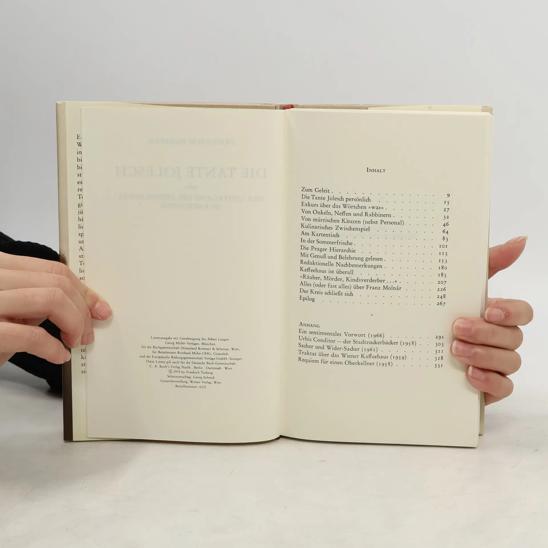 Friedrich Torberg war wohl einer der letzten, der aus eigener Erinnerung die Atmosphäre des ehemals habsburgischen Kulturkreises und die Welt der Boheme in Budapest, Prag und Wien so intensiv zu beschwören vermochte. Franz Molnár, Egon Erwin Kisch, Anton Kuh, Egon Friedell und Alfred Polgar – hier werden sie alle wieder lebendig. Aber mehr noch kommen die Unbekannten zu Wort: der zerstreute Religionslehrer Grün, der geistreiche Rechtsanwalt Sperber, die Redakteure des legendären ›Prager Tagblatts‹ und natürlich die Tante Jolesch, die den Lauf der Welt auf ihre Weise kommentierte.