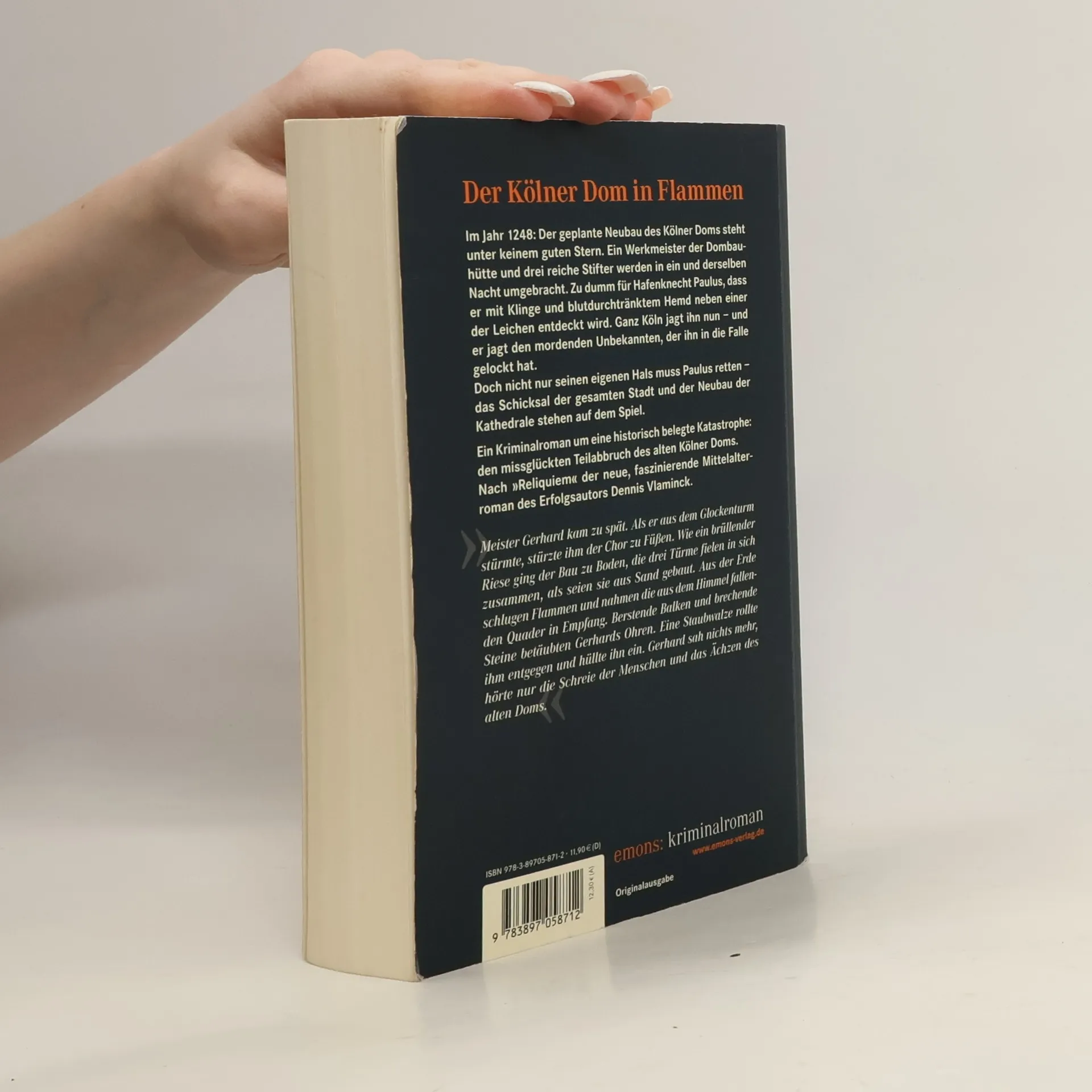 Im Jahr 1248: Der geplante Neubau des Kölner Doms steht unter keinem guten Stern: Ein Werkmeister der Dombauhütte und drei reiche Stifter werden in ein und derselben Nacht umgebracht. Zu dumm für Hafenknecht Paulus, dass er mit Klinge und blutdurchtränktem Hemd neben einer der Leichen entdeckt wird. Ganz Köln jagt ihn nun – und er jagt den mordenden Unbekannten, der ihn in die Falle gelockt hat. Alle Spuren führen auf ein mysteriöses Schiff, das im Kölner Hafen vor Anker gegangen ist. Doch nicht nur seinen eigenen Hals muss Paulus retten – das Schicksal der gesamten Stadt und der Neubau der Kathedrale stehen auf dem Spiel.